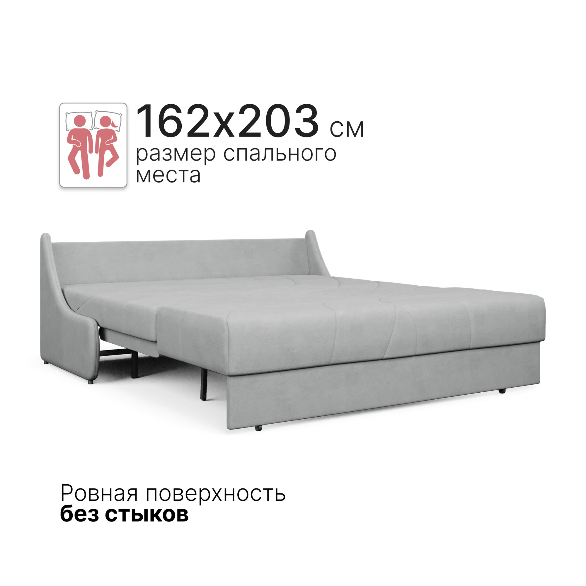 Купить Диван-кровать раскладной Прямой на металлокаркасе, Аккордеон, ортопедический, 162х200 спальное место, Клайд, велюр серый