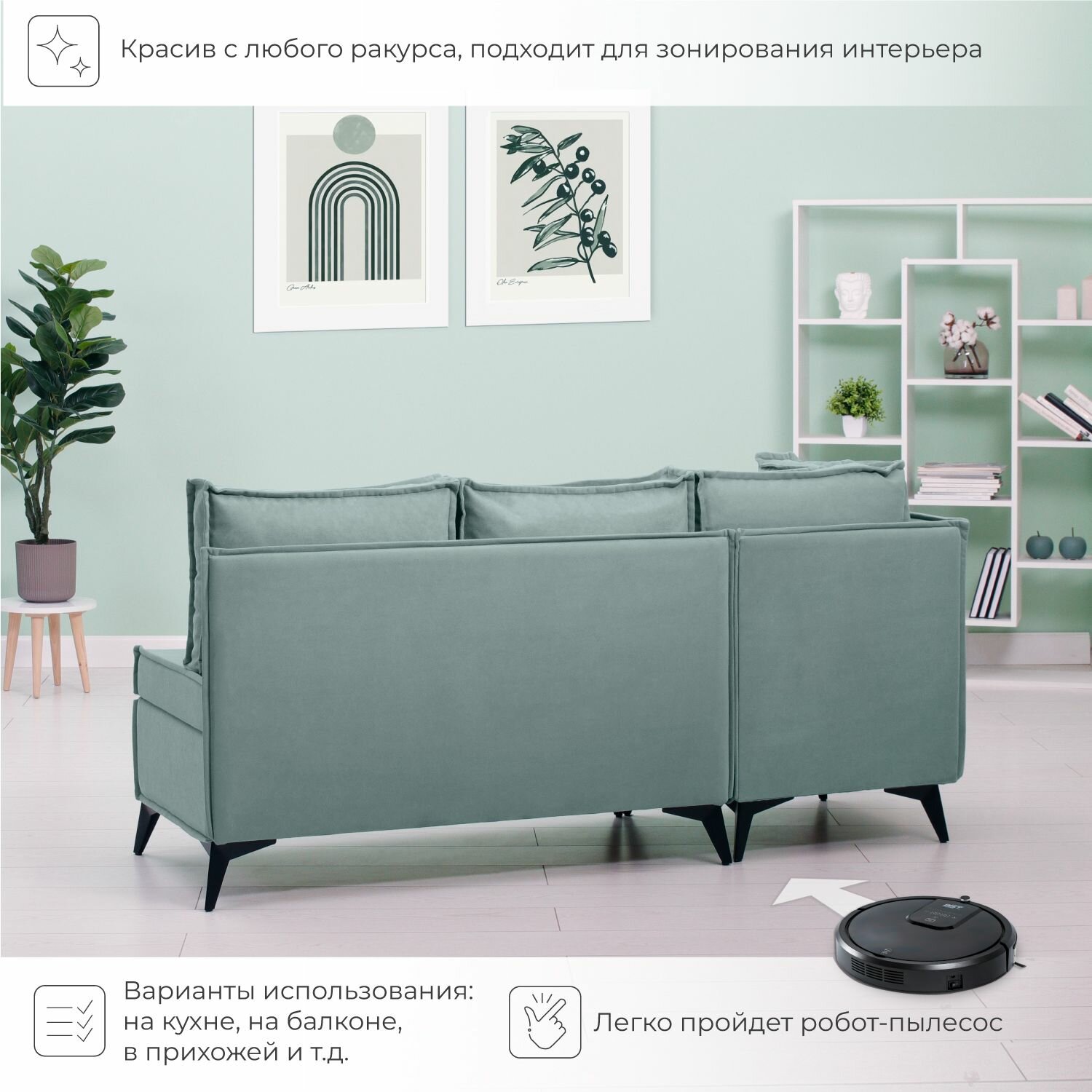СохранитьДиван на кухню, угловой, на балкон, в прихожую, NORTA Loft XS 585x585x800 VIVALDI 10 велюр интересное: