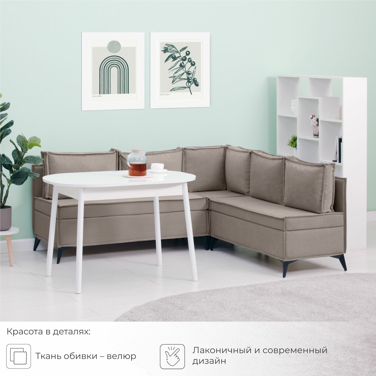 СохранитьДиван на кухню, угловой, на балкон, в прихожую, NORTA Loft XS 585x585x800 VIVALDI 5 велюр интересное: