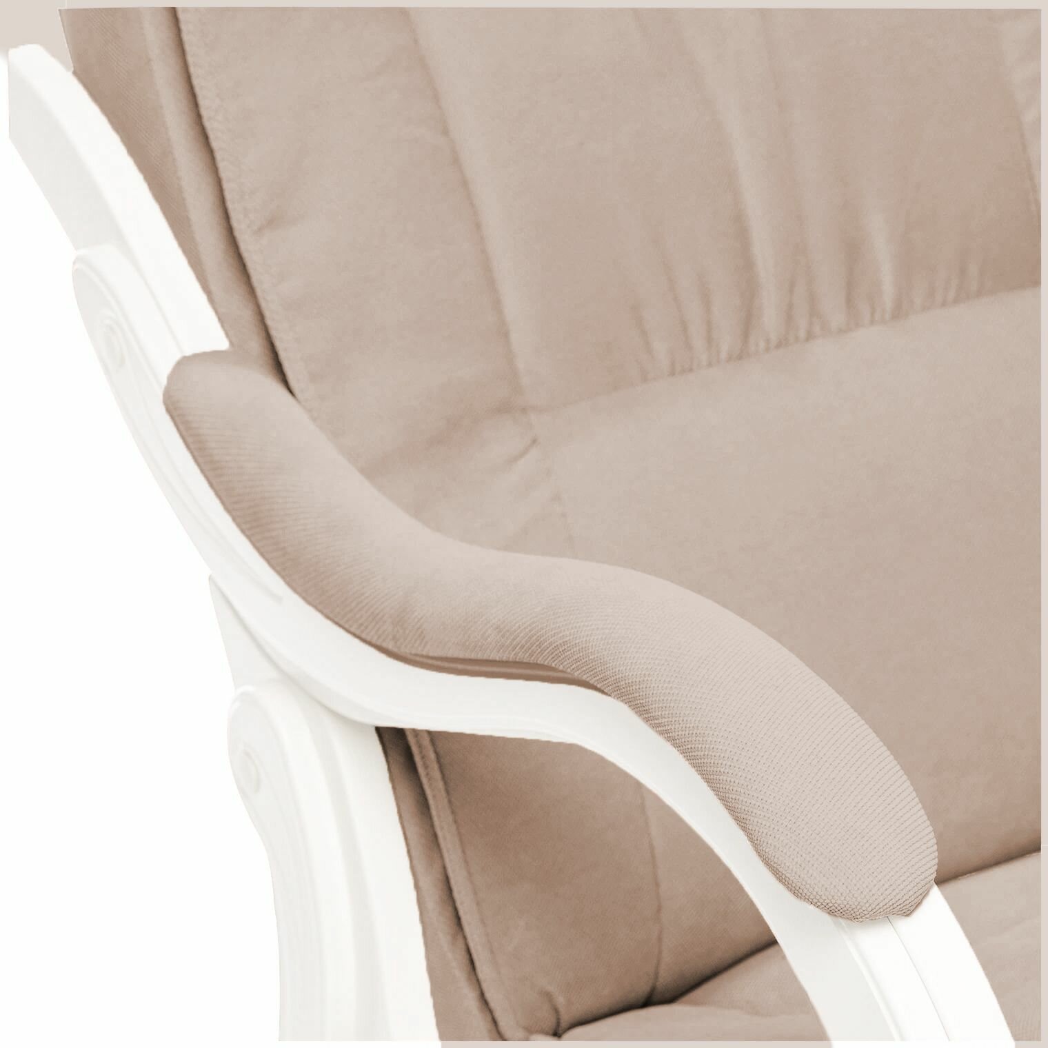 Кресло качалка Лексус для взрослых с подножкой велюр светло-бежевый ш.71 см до 170 кг