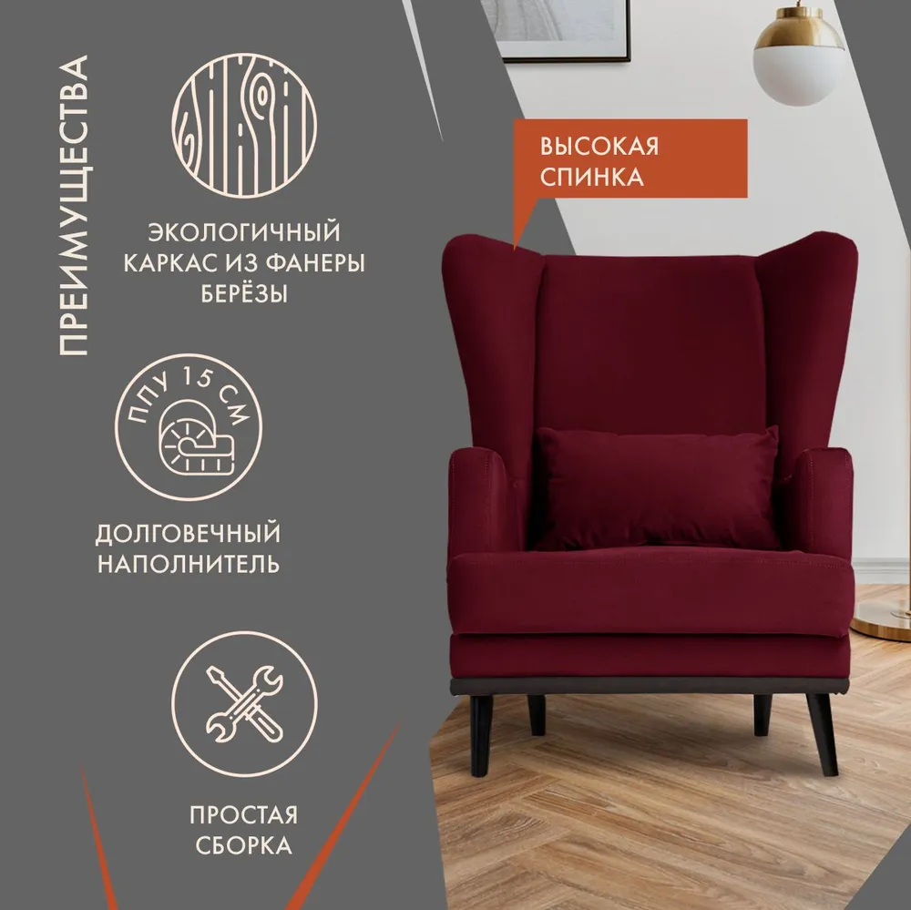 Кресло Оскар мягкое для отдыха дома, на ножках, велюр Maserati bordo 75х85х90 (ШхГлхВ)