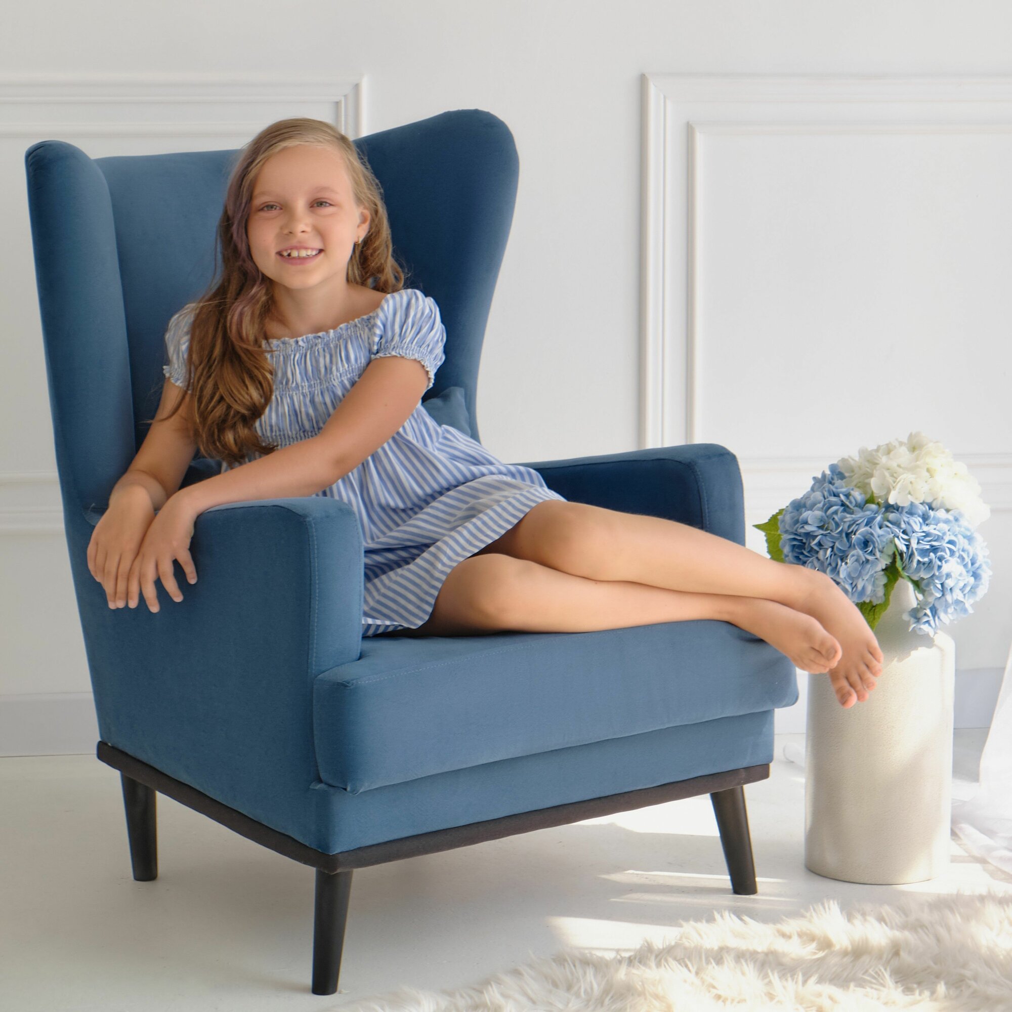 Кресло Оскар мягкое для отдыха дома, на ножках, велюр Zara birusa, 75х85х90 (ШхГлхВ)