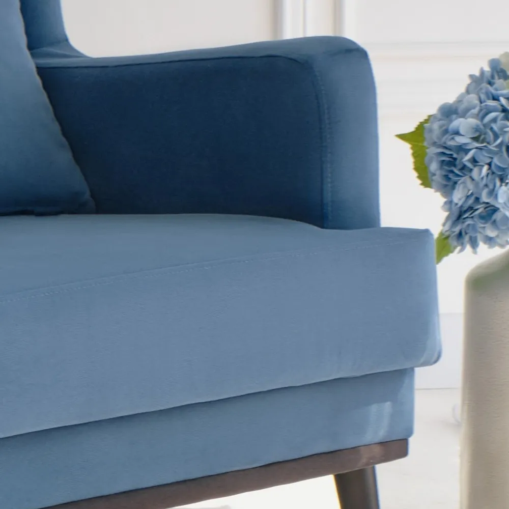 Кресло Оскар мягкое для отдыха дома, на ножках, велюр Velvet Blue 01, 75х85х90 (ШхГлхВ)