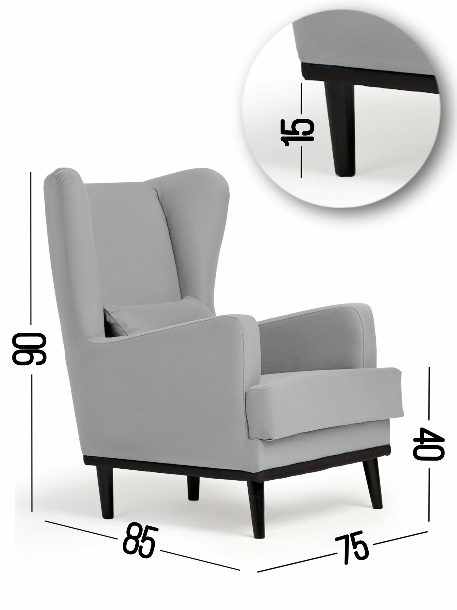 Кресло Оскар мягкое для отдыха в гостиную, с подушкой, на ножках, велюр Mgray 18