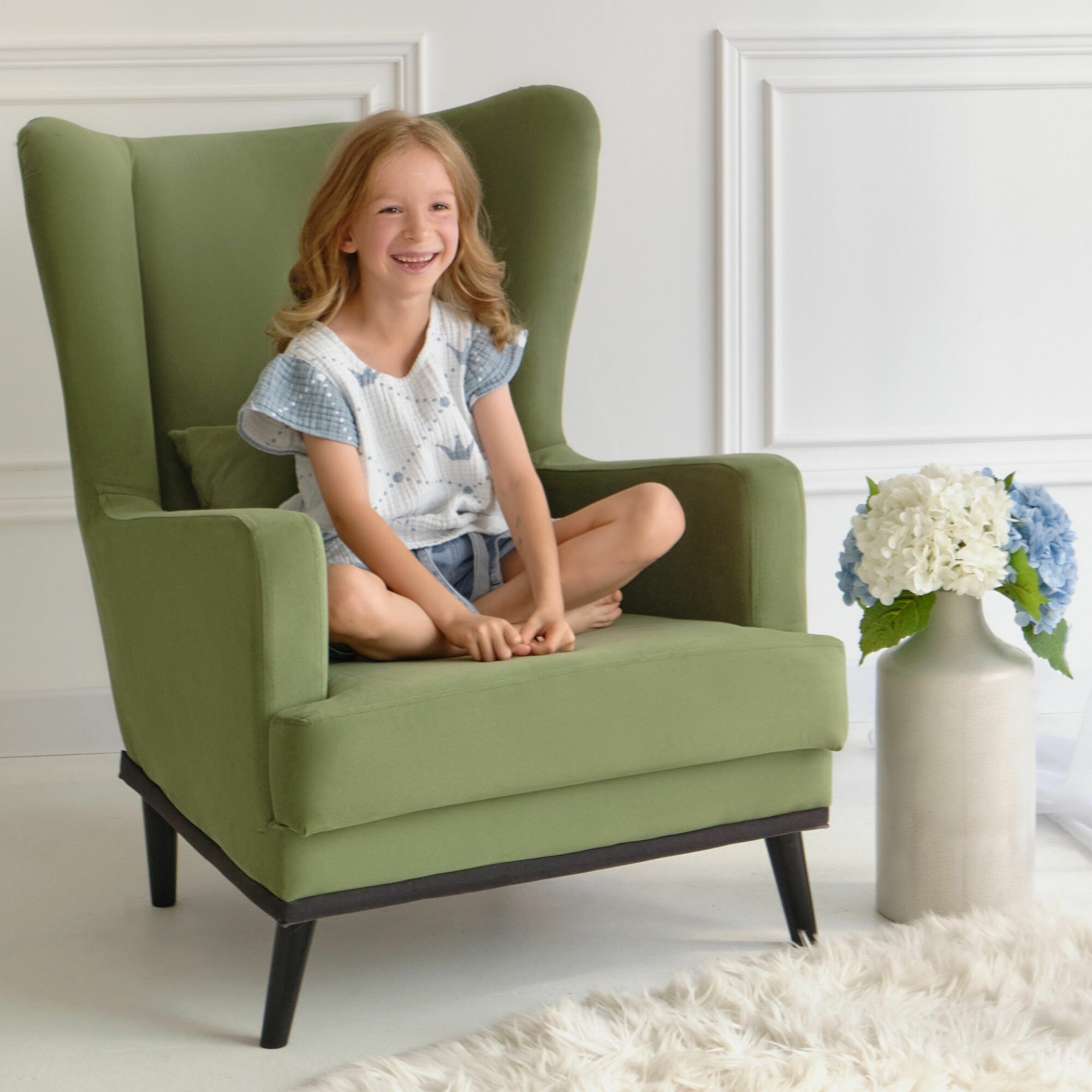 Кресло Оскар мягкое для отдыха дома, на ножках, велюр Zara green 75х85х90 (ШхГлхВ)