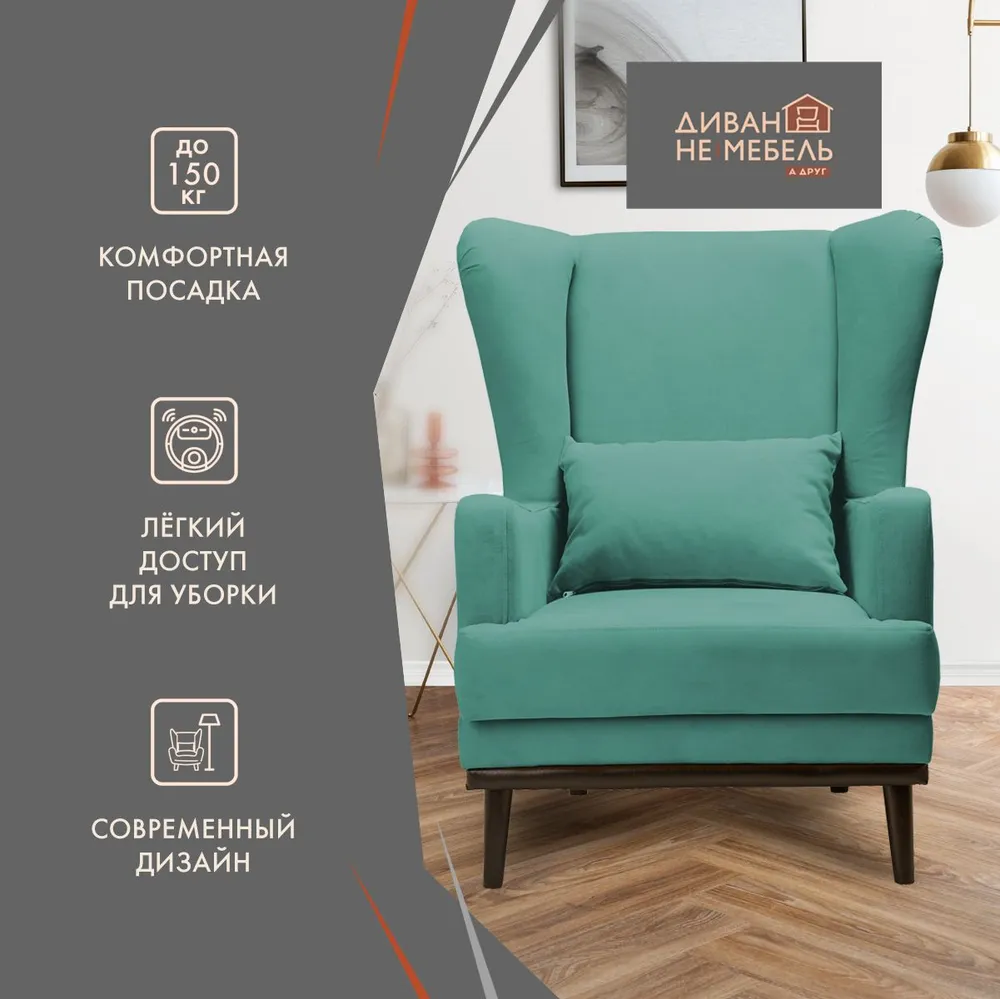 СохранитьКресло Оскар мягкое для отдыха дома, на ножках, велюр Velvet Mint 03, 75х85х90 (ШхГлхВ) интересное: