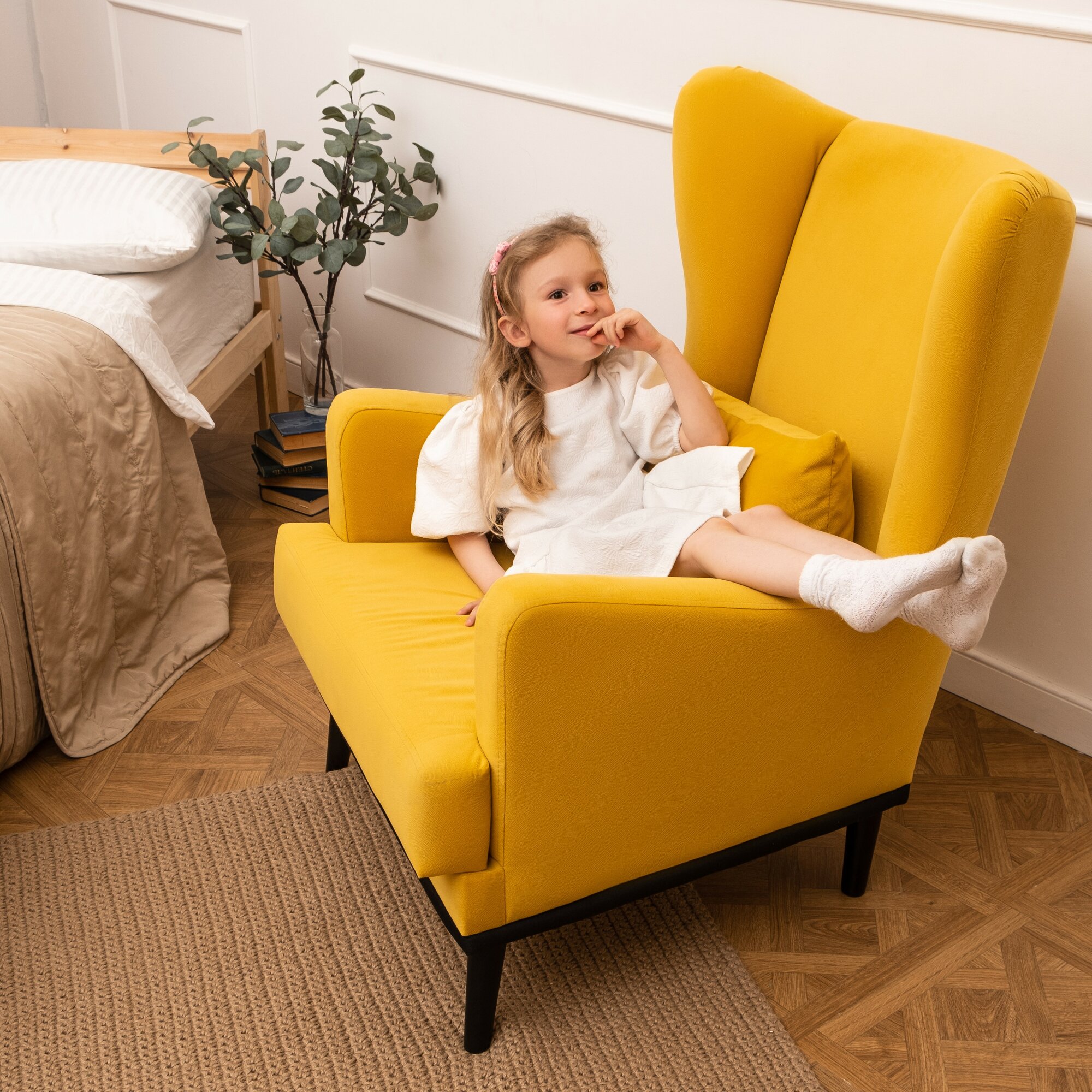 СохранитьКресло Оскар мягкое для отдыха дома, на ножках, велюр Maserati Yellow 75х85х90 (ШхГлхВ) интересное: