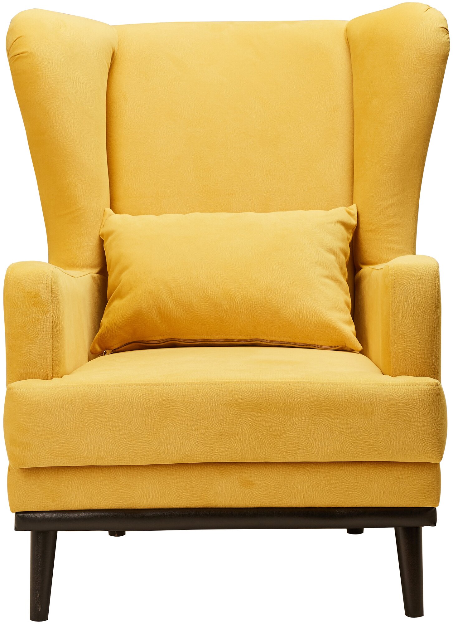 Кресло Оскар мягкое для отдыха дома, на ножках, велюр Max Yellow 75х85х90 (ШхГлхВ)