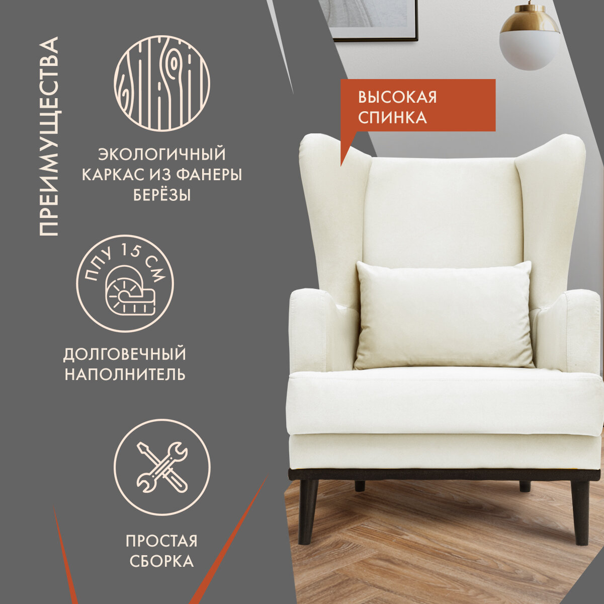 Купить Кресло Оскар мягкое для отдыха дома, на ножках, велюр Zara cream, 75х85х90 (ШхГлхВ)