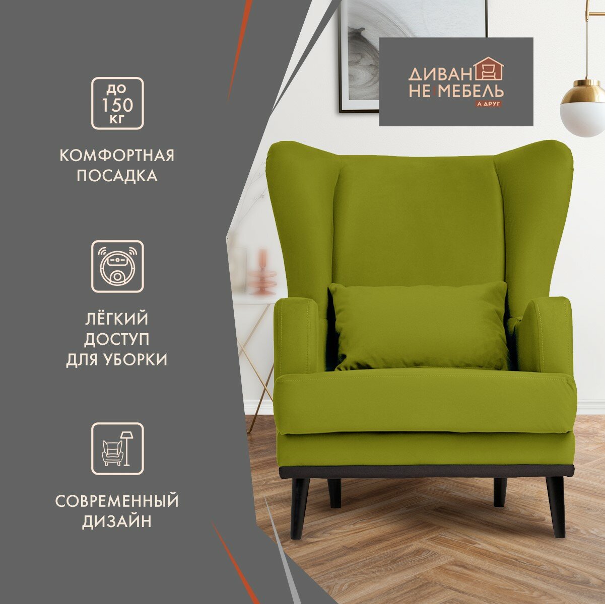 Кресло Оскар мягкое для отдыха в гостиную, с подушкой, на ножках, велюр Mах green