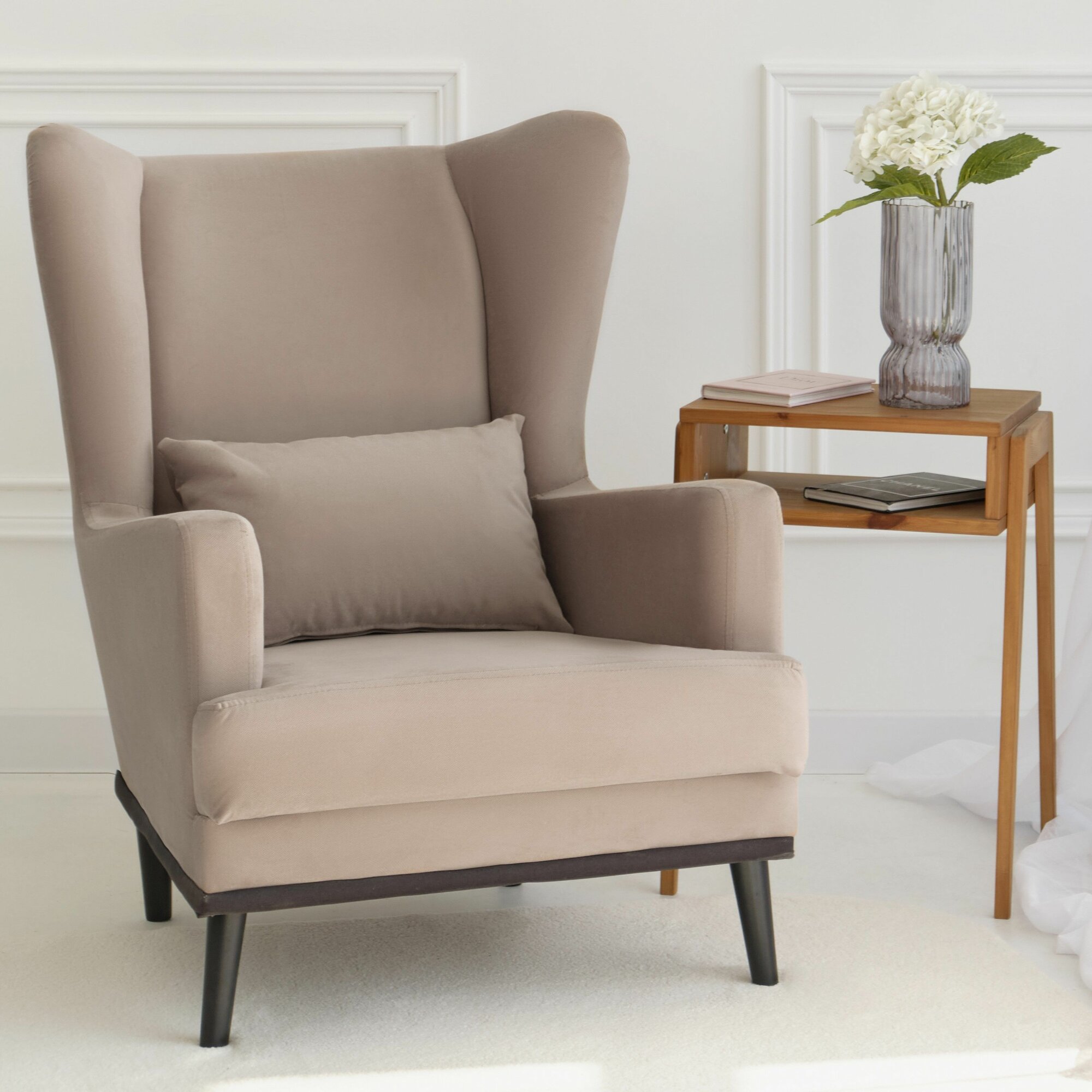 Кресло Оскар мягкое для отдыха в гостиную, на ножках, велюр Mbeige 07