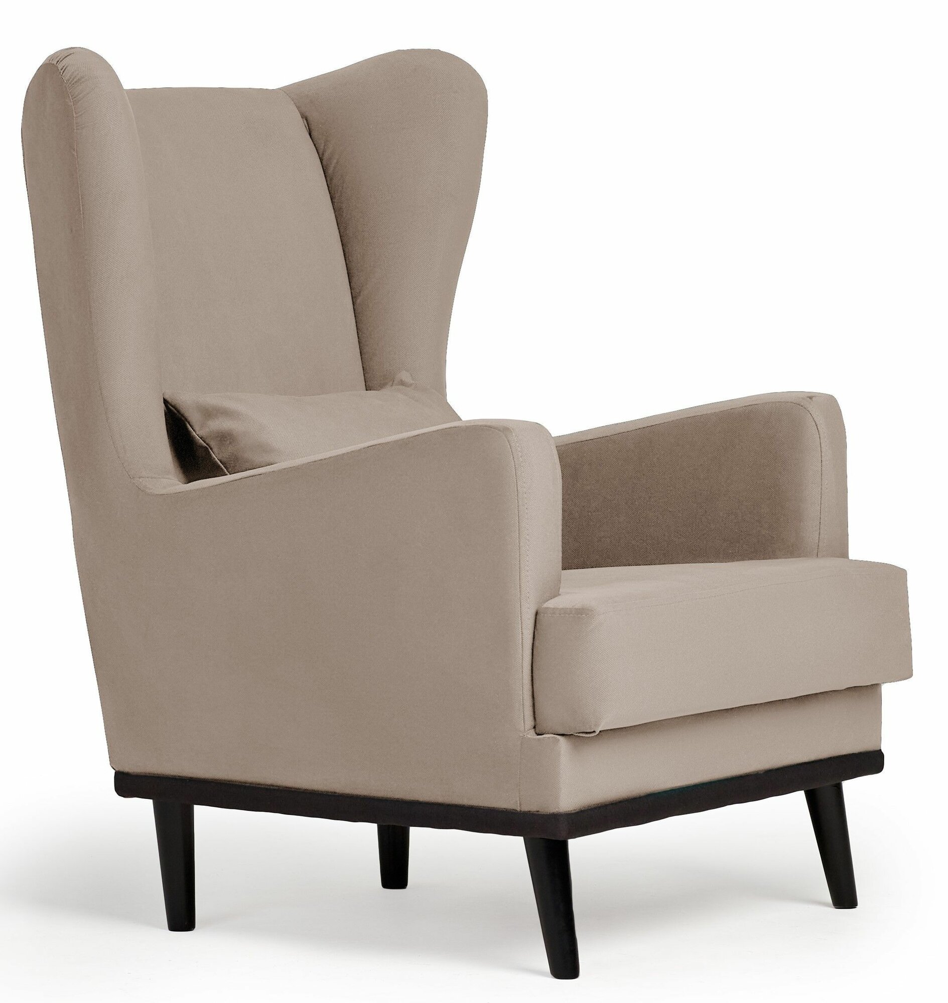 Кресло Оскар мягкое для отдыха в гостиную, с подушкой, на ножках, велюр бежевый
