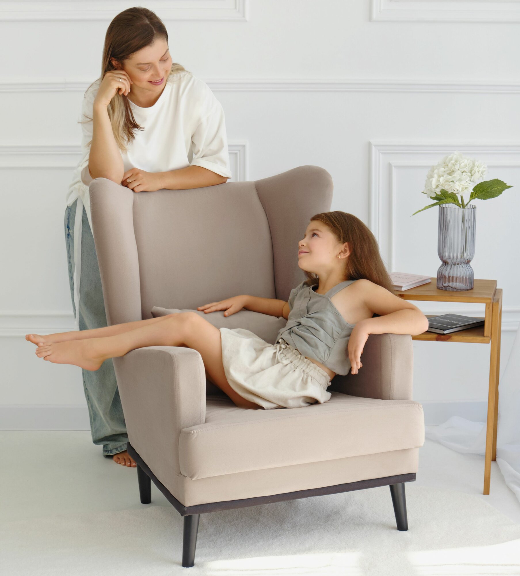 Кресло Оскар мягкое для отдыха дома, на ножках, велюр Zara cream, 75х85х90 (ШхГлхВ)