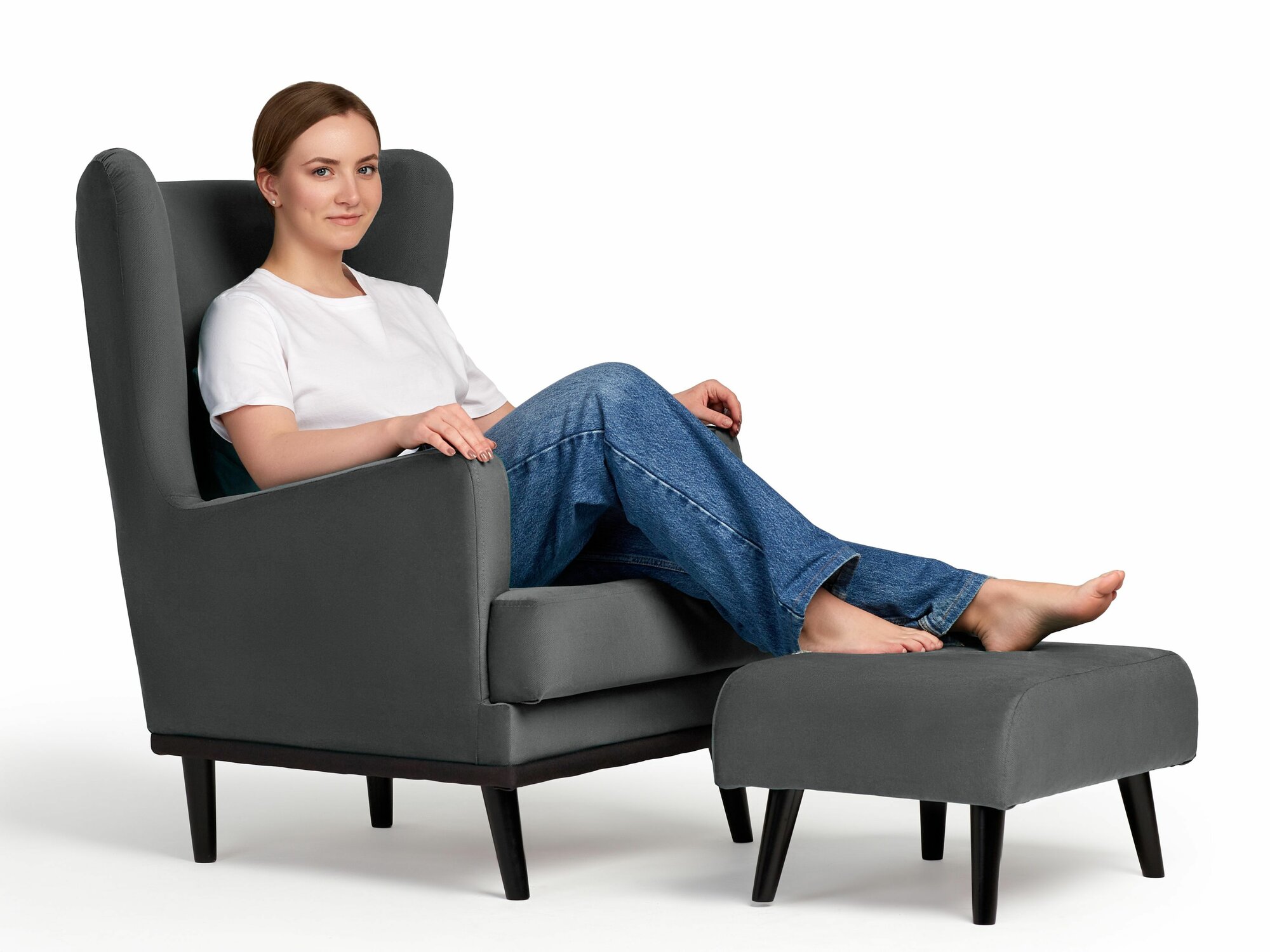 Кресло Оскар мягкое для отдыха в гостиную, на ножках, велюр темно-серый