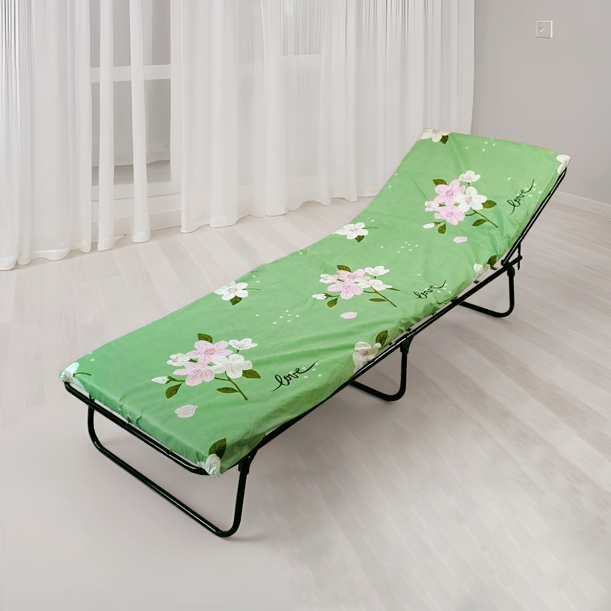 Раскладушка взрослая с матрасом 5 см, максимальная нагрузка до 90 кг