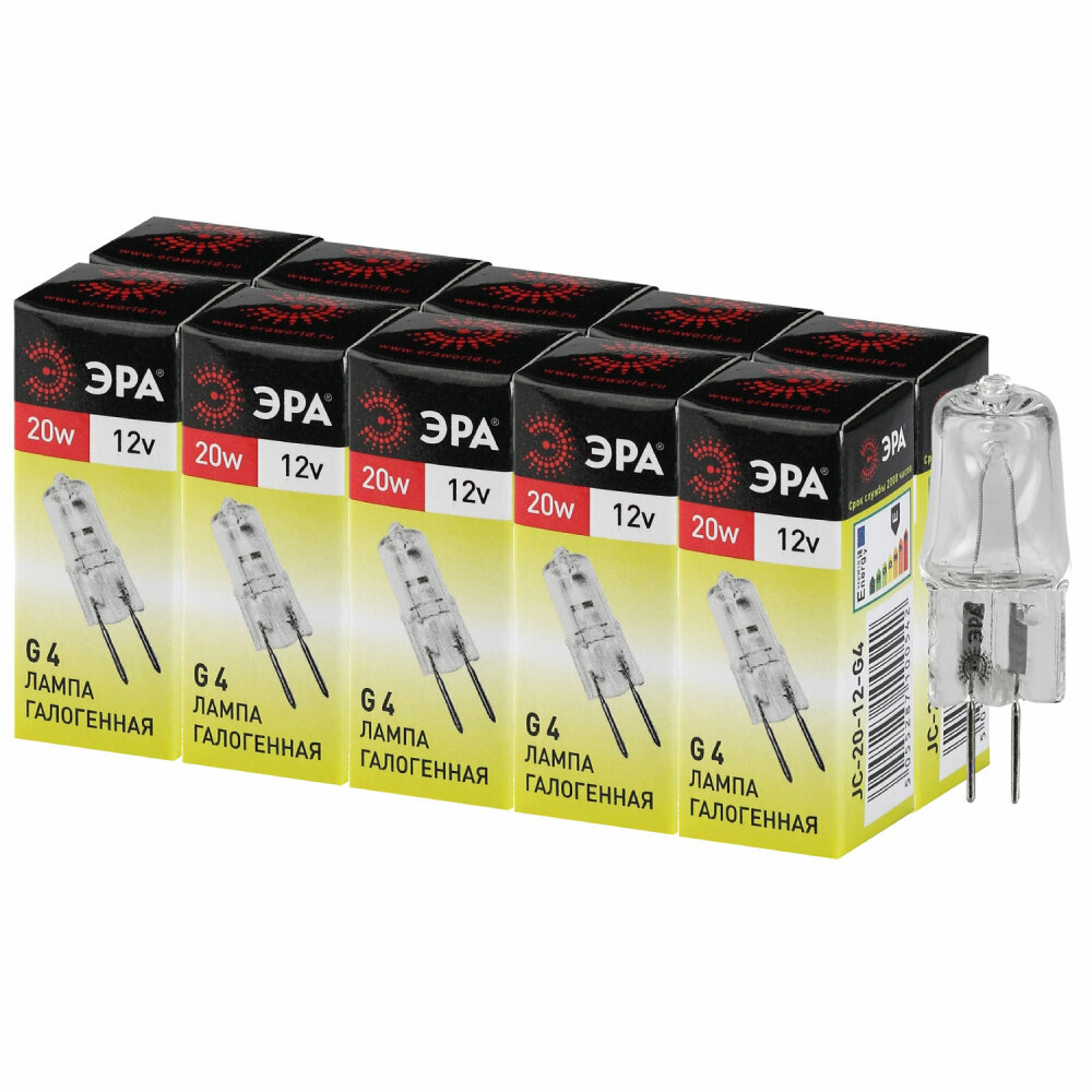 Набор галогенных лампочек ЭРА G4-JC-20W-12V Капсула 20 Вт 10 штук