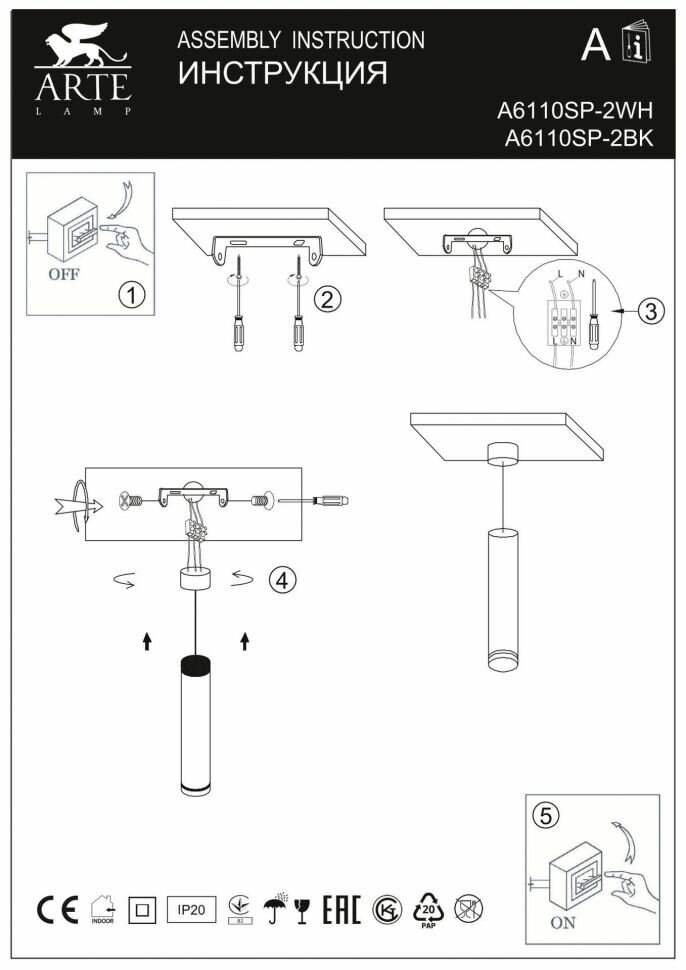 ARTE LAMP Точечный подвесной светильник Arte Lamp ALTAIS A6110SP-2WH