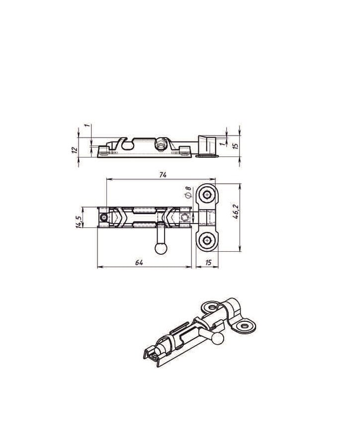 Шпингалет большой L-104 с ответной частью (2 шт), оцинк. сталь, задвижка на дверь накладная ЗТ-1 с цельным движком, щеколда для двери