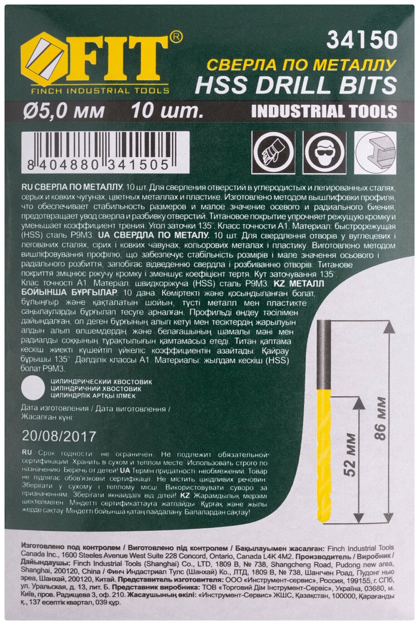 FIT Сверла по металлу 5,0 мм набор 10 шт. HSS полированные