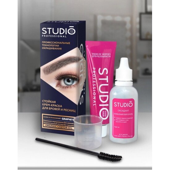 Комплект для окрашивания бровей и ресниц STUDIO PROFESSIONAL графит 50+30 мл