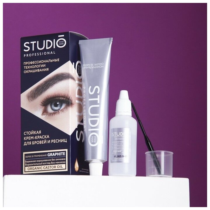 Комплект для окрашивания бровей и ресниц STUDIO PROFESSIONAL графит 50+30 мл