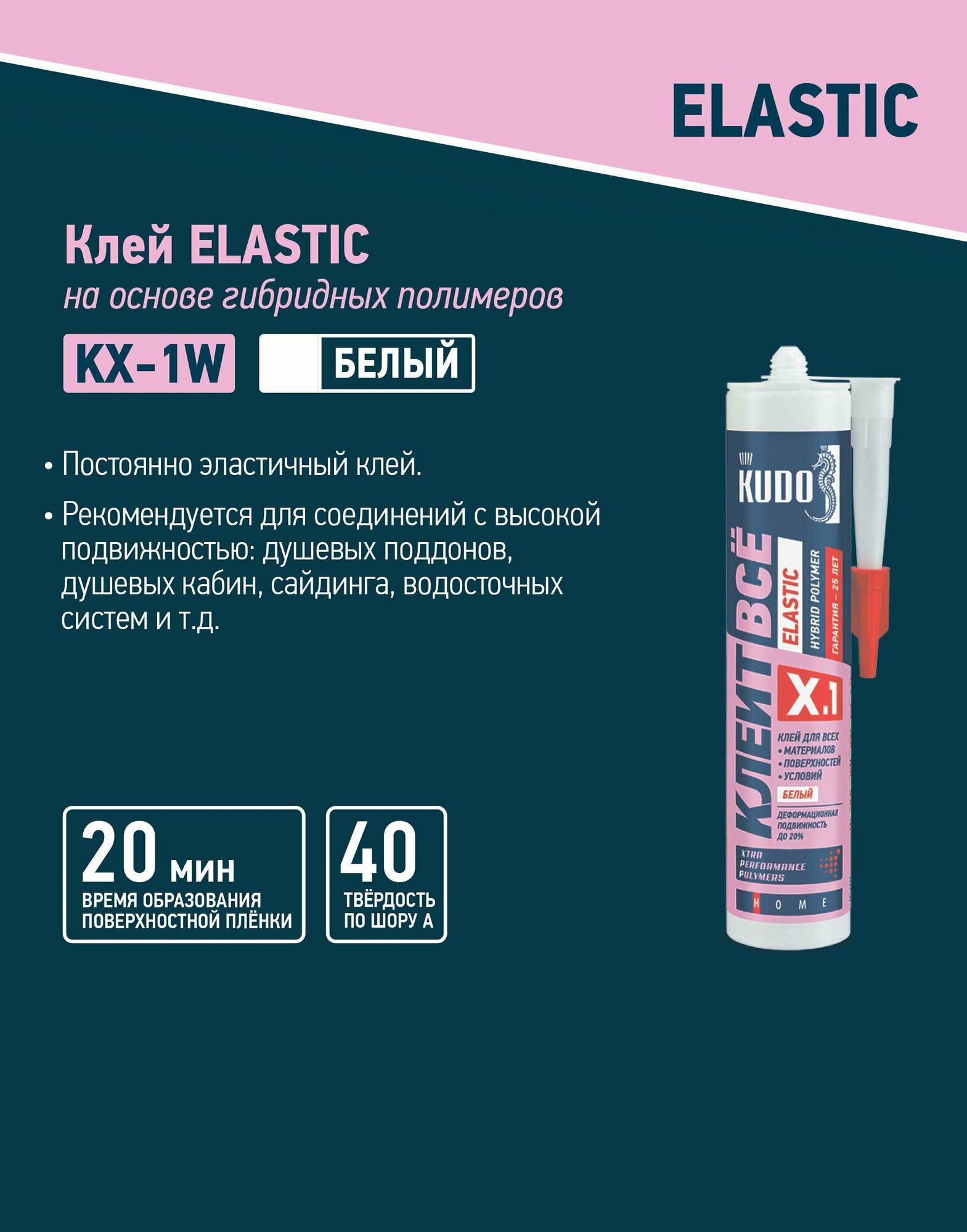 Клей-герметик KUDO, универсальный, белый, 280 мл, KX-1W, Elastic Клеит все