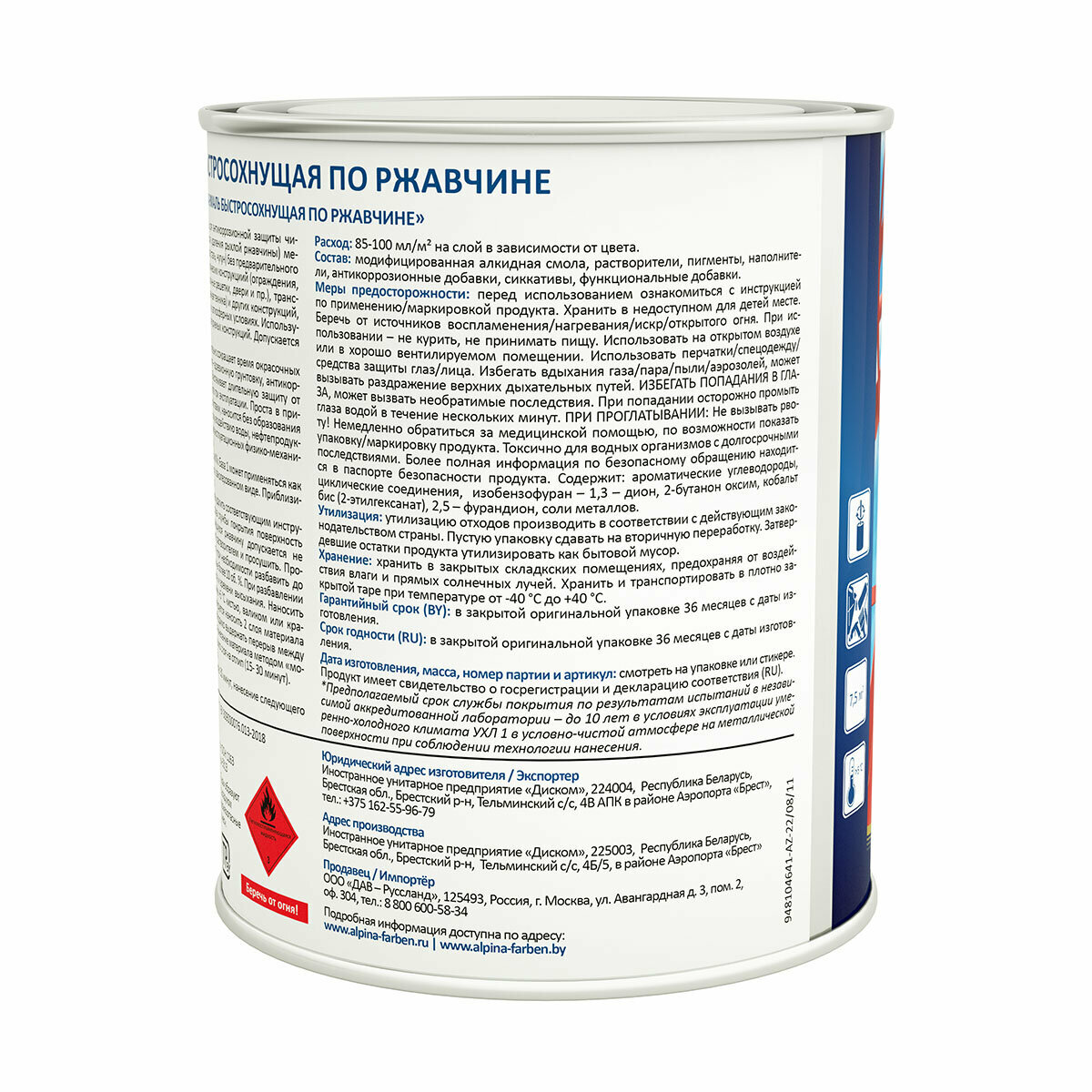 Alpina эмаль быстросохнущая по ржавчине (шоколадный, RAL 8017, полуматовый, 0,75л)