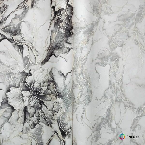 Обои Вспененный винил на флизелине светло-серые цветы 1,06*10мвый под штукатурку под мрамор, в прихожую, в спальню, на кухню, длина 10м ширина 1.06м