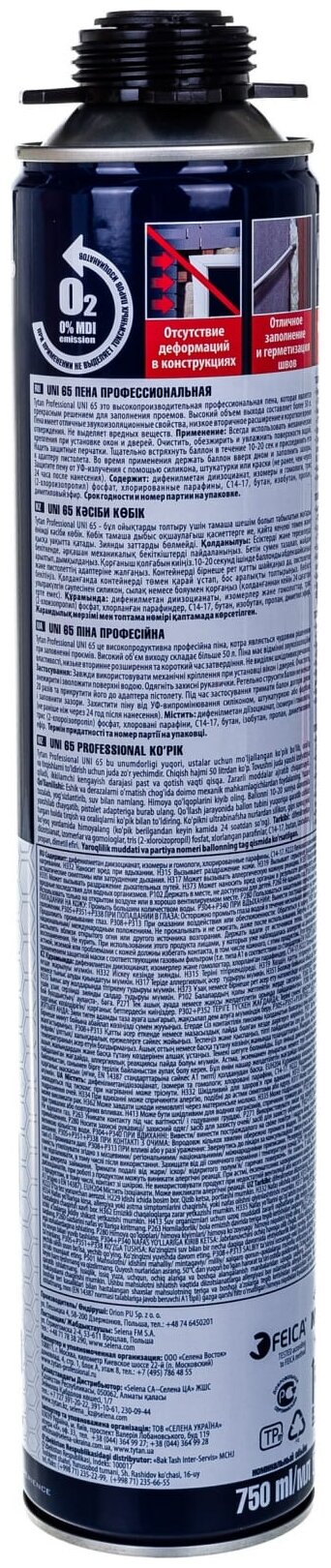 Титан 65 UNI Профи пена монтажная (750мл) / TYTAN 65 UNI пена монтажная профессиональная (750мл)