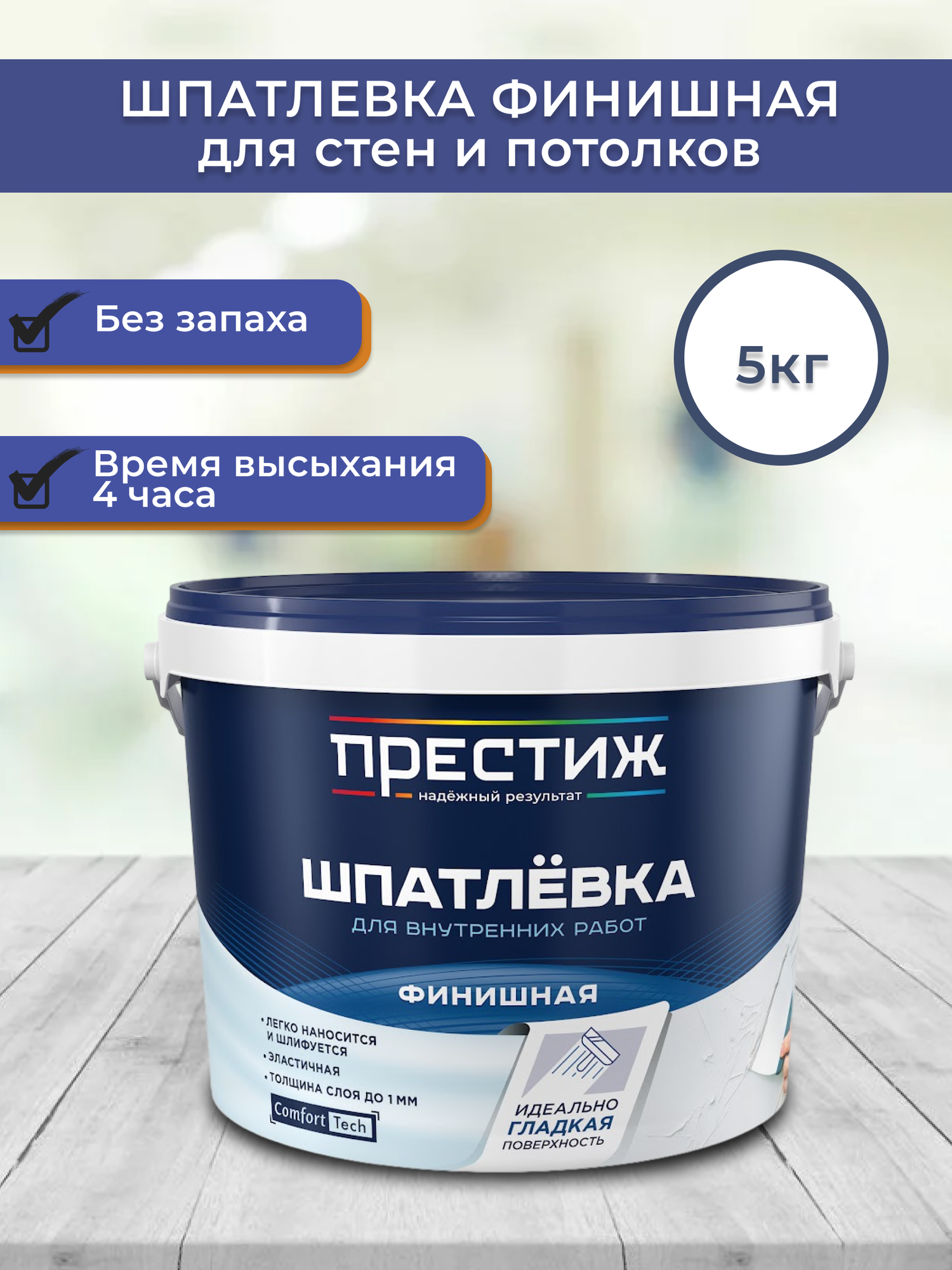 Шпатлевка акриловая Престиж финишная 5 кг, Россия интересное: