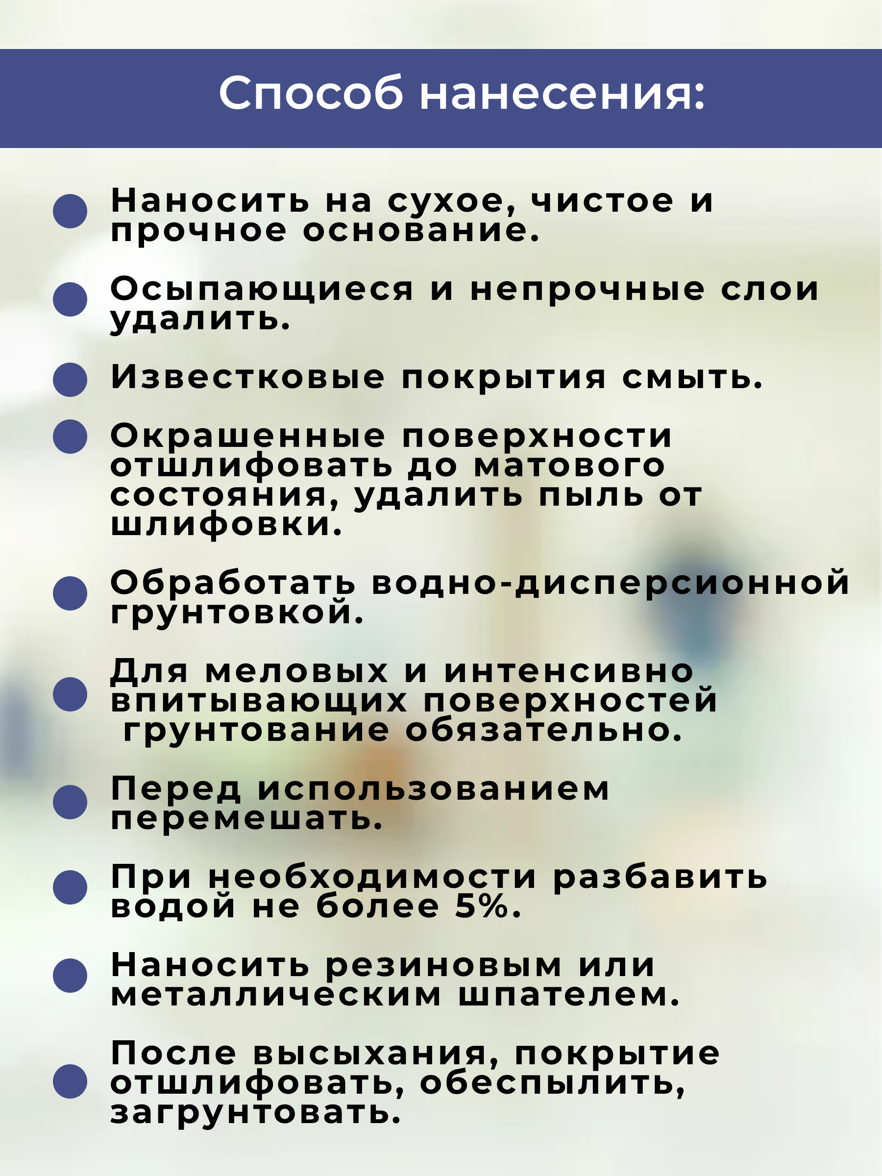 | Тип работ | для внутренних работ |