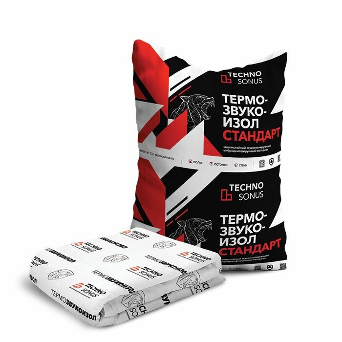Шумоизоляционный мат ТехноСонус ТермоЗвукоИзол ТЗИ Стандарт S, 10х1,5х10 мм, 15 кв. м