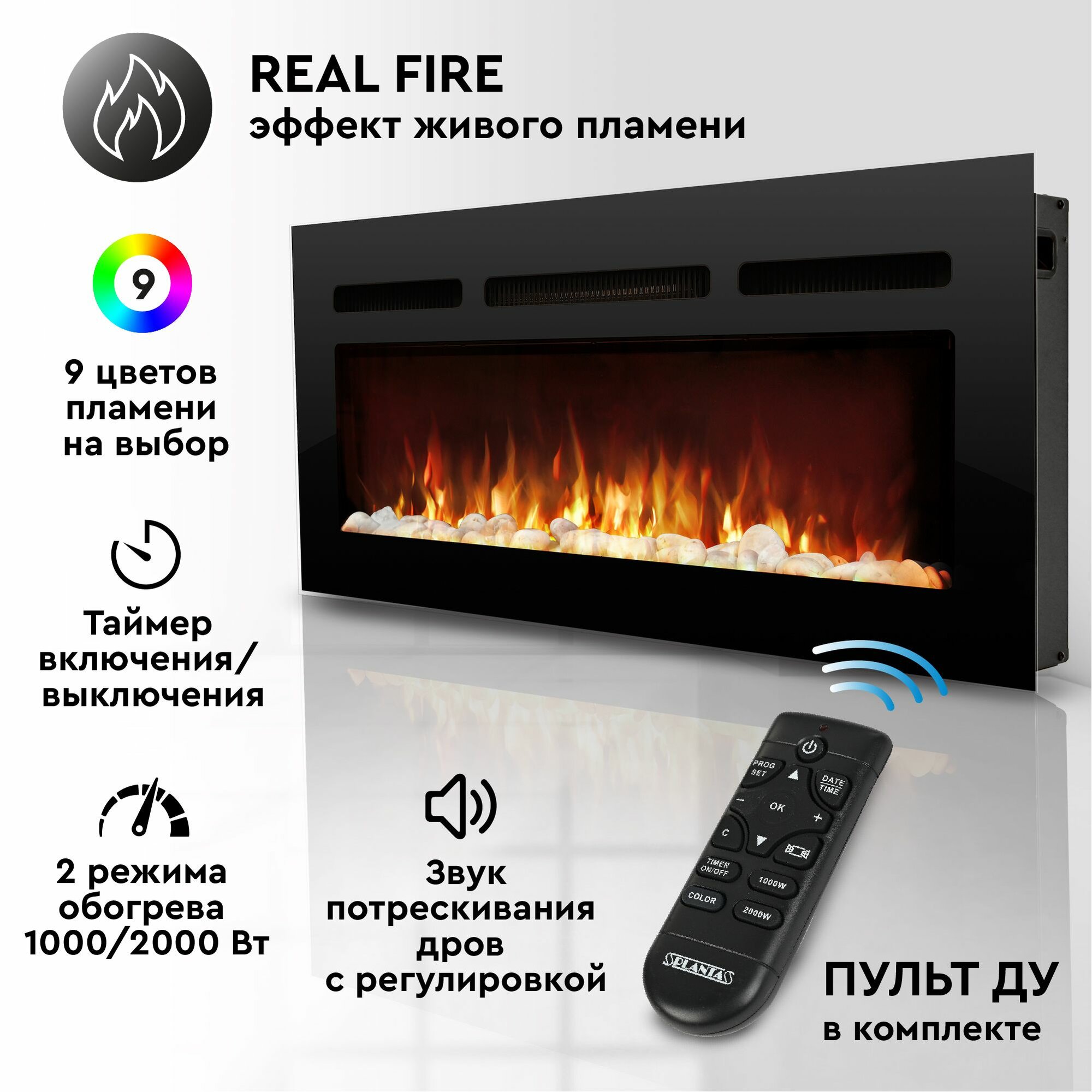 Камин электрический настенный/встраиваемый PLANTA PFP-INS040 MULTICOLOR, 9 цветов пламени