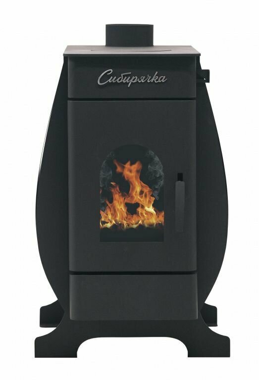 Сибирячка 9 отопительная печь НМК с кожухом из нержавеющей стали и конфоркой, дверцей со стеклом и функцией обогрева воздуха для дома, дачи, коттеджа и гаража