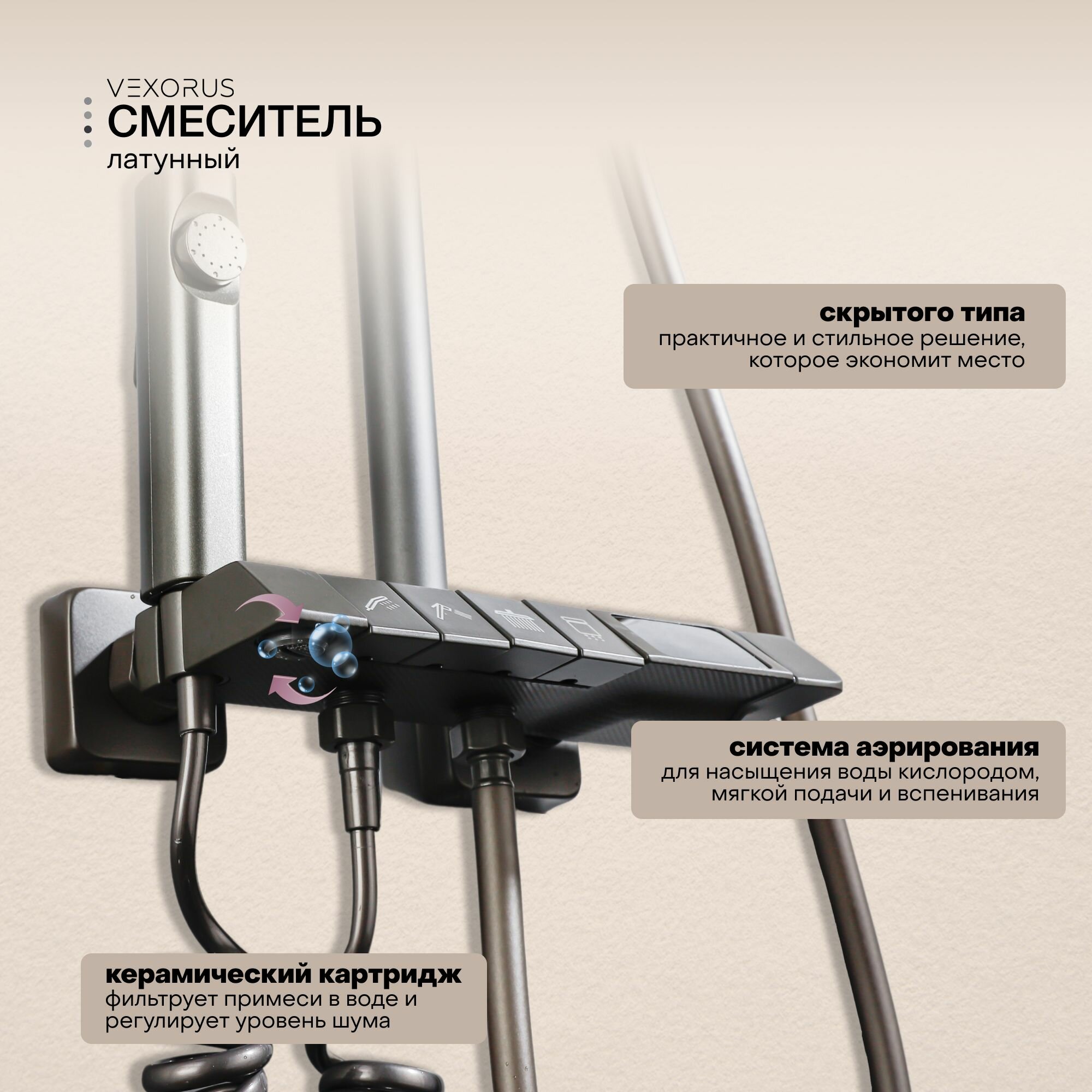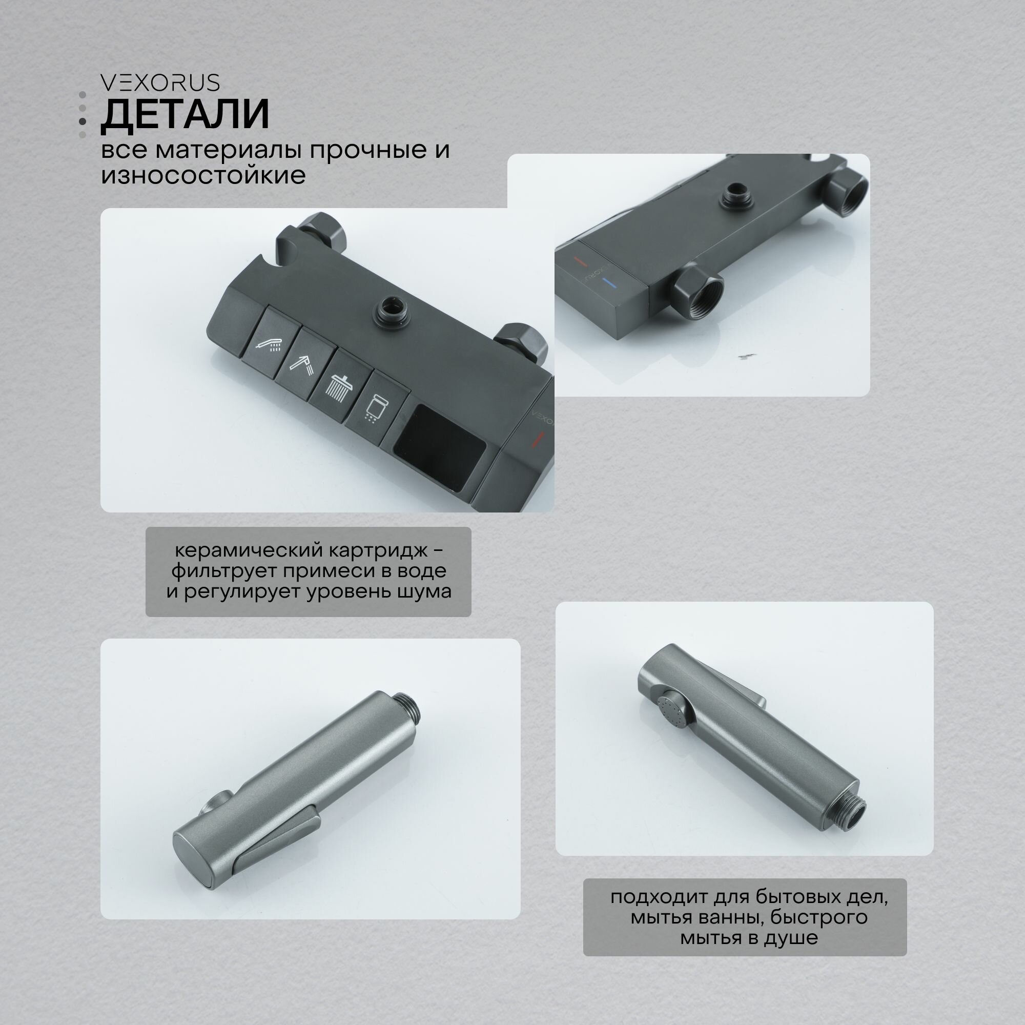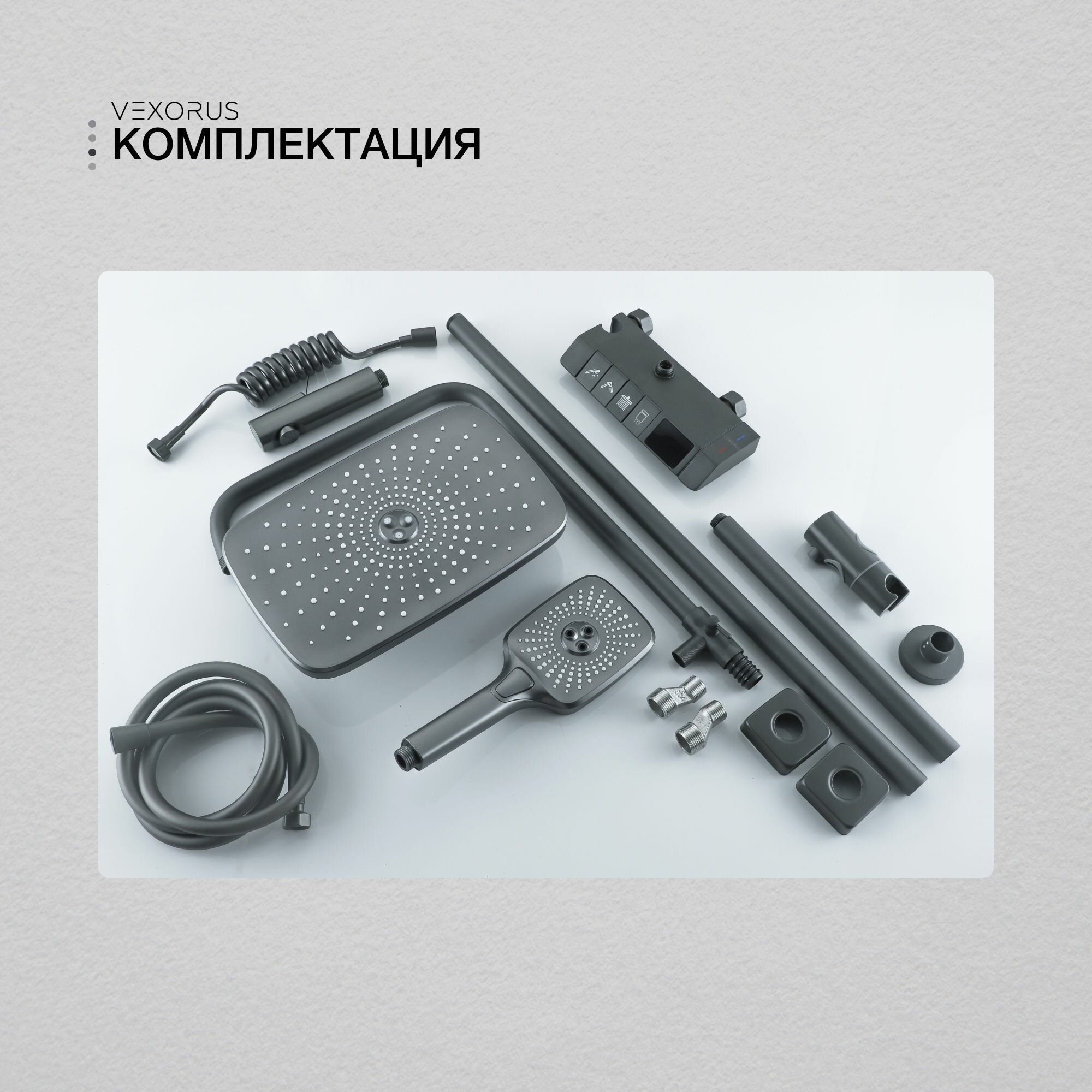 Душевая система Vexorus с тропическим душем и смесителем, датчиком температуры,комплект 4 в 1 интересное: