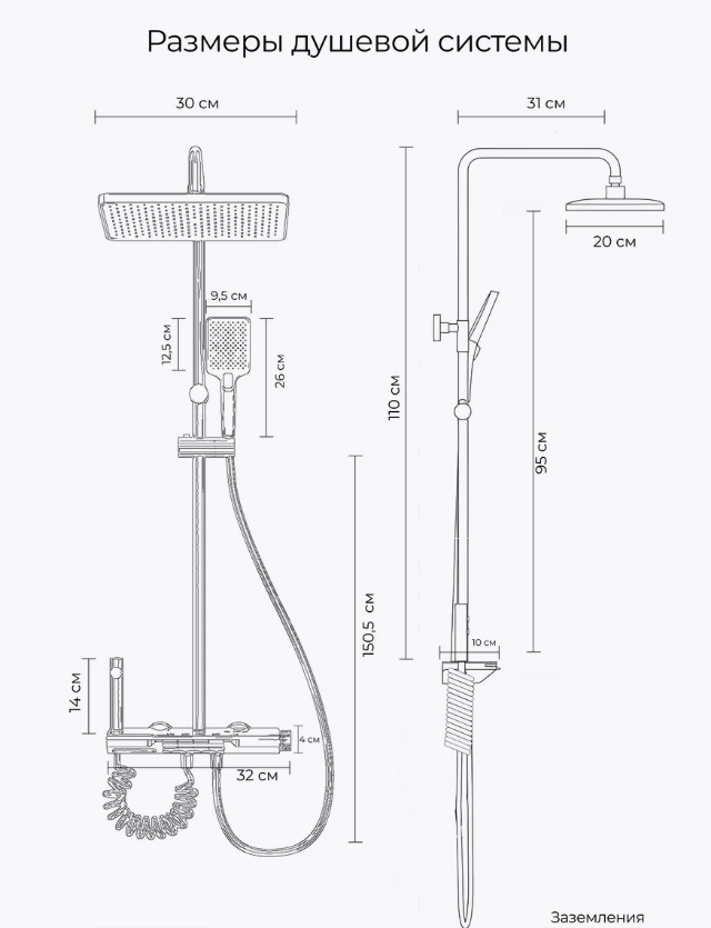 | Форма бокового душа | круглая |