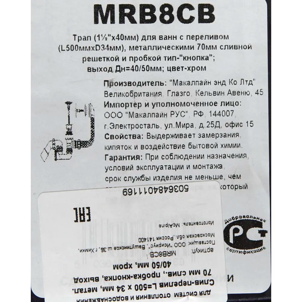 Слив-перелив Mcalpine MRB8CB-PB, L=500 х 34 мм, слив 70 мм, выход 40/50 мм