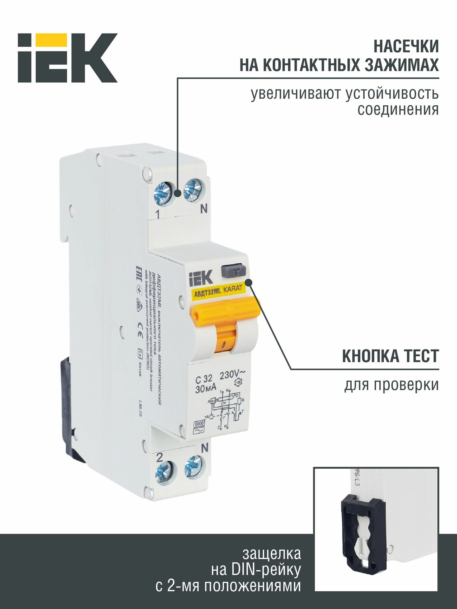 IEK KARAT Дифференциальный автоматический выключатель АВДТ32МL С32 30мА KARAT, IEK, арт.MVD12-1-032-C-030 интересное: