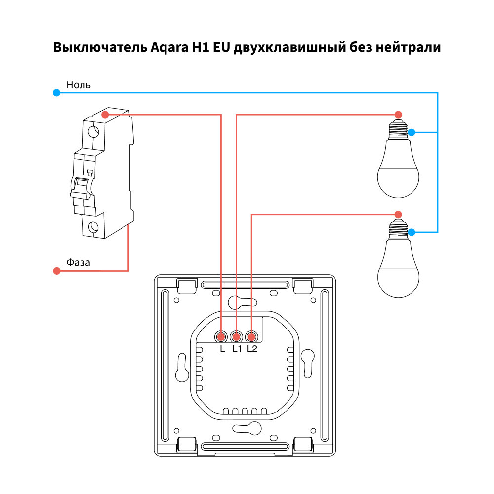 Умный выключатель двухклавишный без нейтрали Aqara H1 WS-EUK02, умный дом, белый