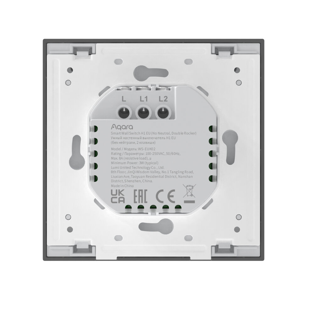 AQARA Умный настенный выключатель H1 EU(без нейтрали, 2 клавиши), модель WS-EUK02