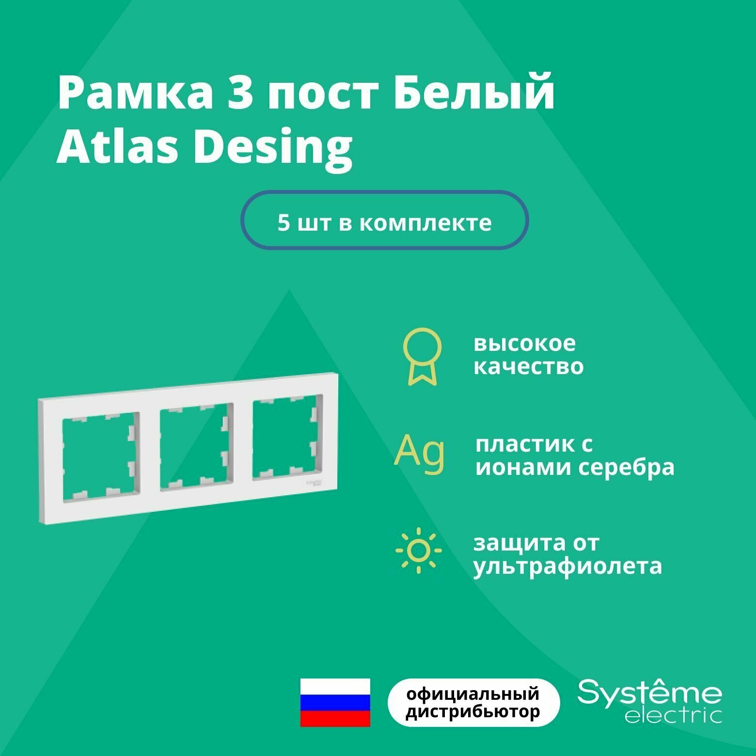 Systeme Electric ATLASDESIGN 3-постовая рамка, универсальная, белый ATN000103 комплект 3 шт
