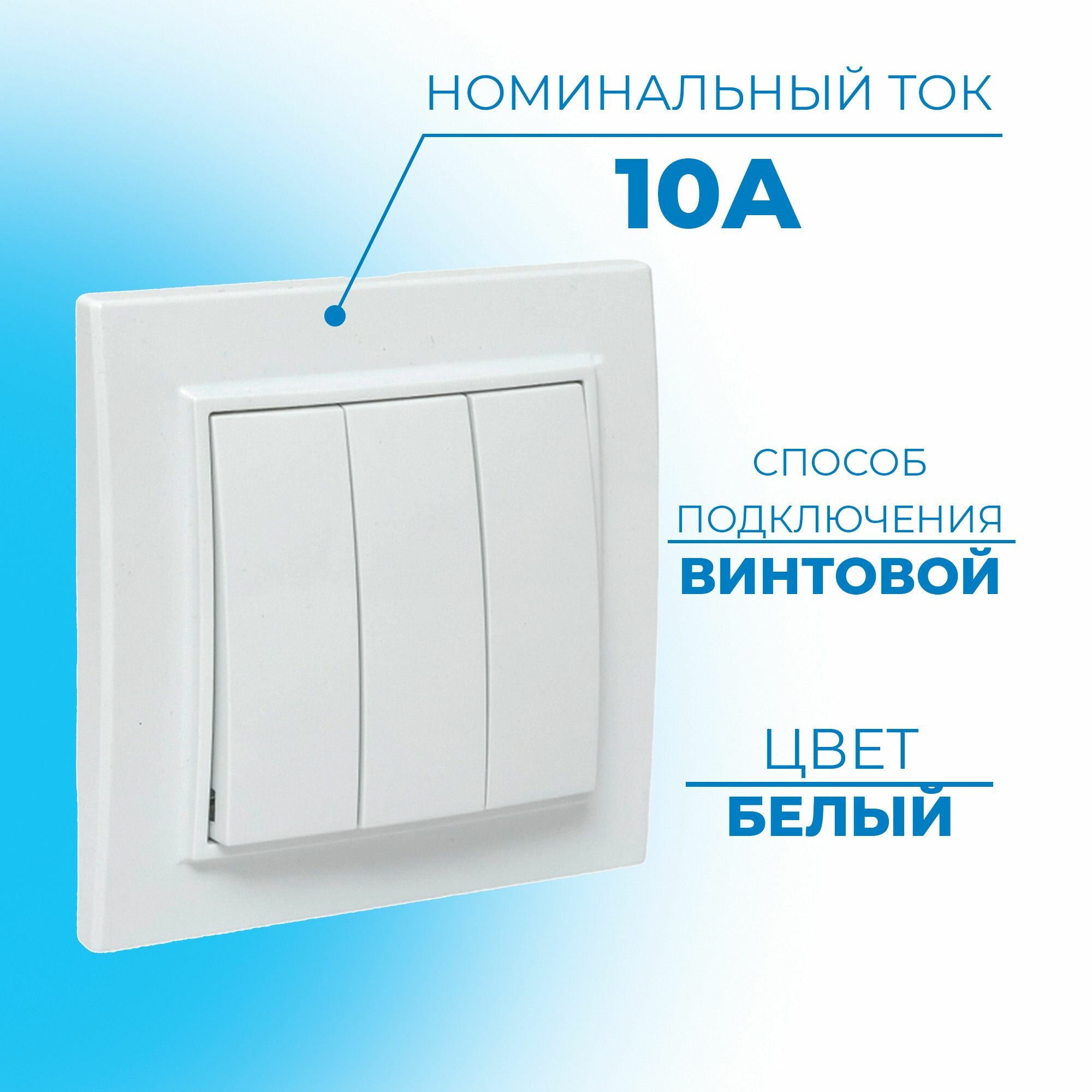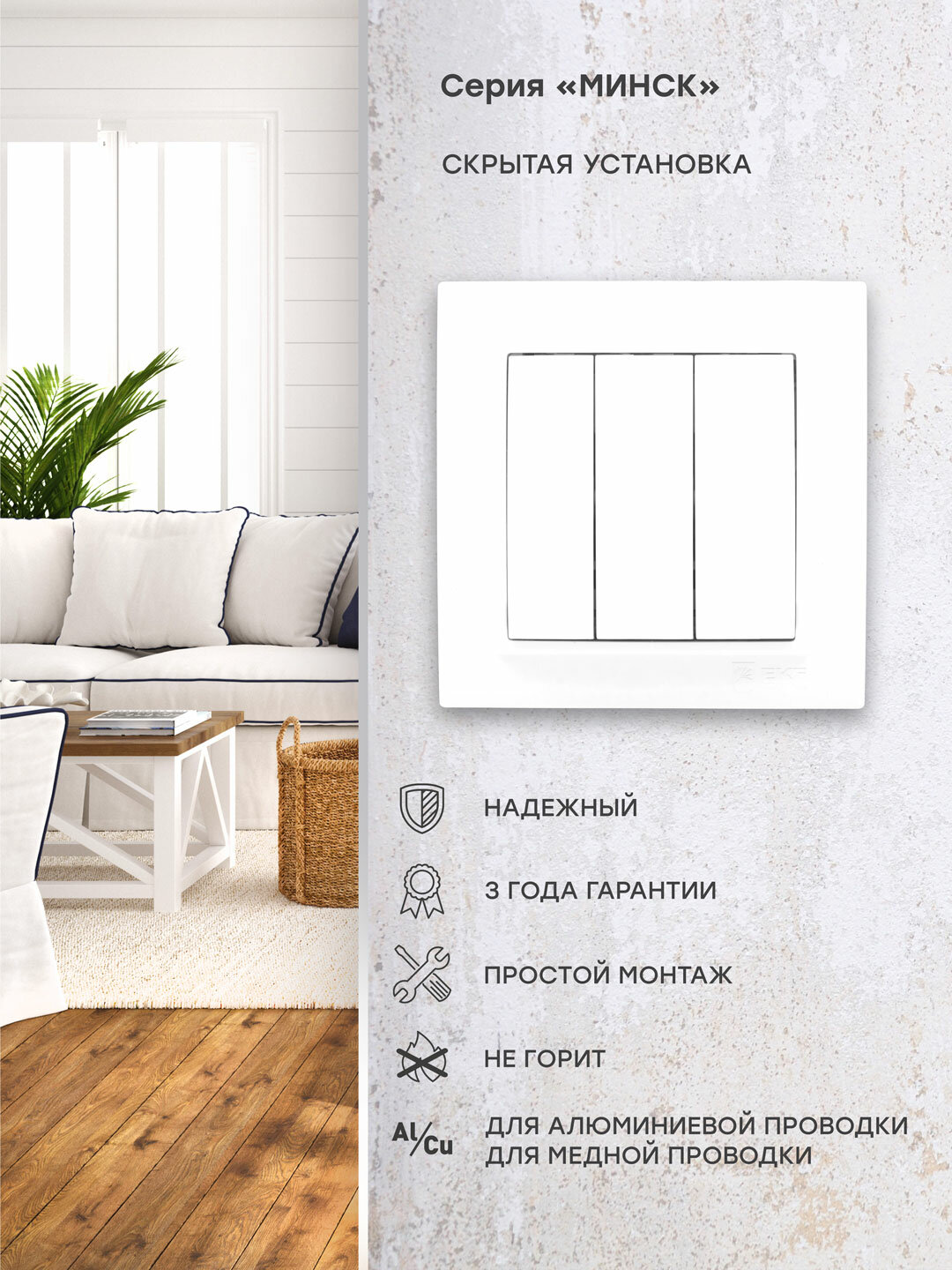 Выключатель 3-клавишный СП,10А, белый Basic Минск