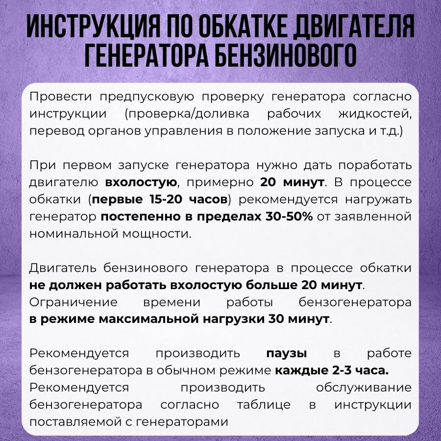 | Дополнительная информация | Тип / Вид (опционально) мобильные Тип двигателя 4-х тактный Стартер ручной стартер Max мощность, кВт 5.5 Автозапуск нет Вид топлива Бензин АИ-92 Объем масляного бака, л 0.6 Емкость топливного бака, л 10 Объем двигателя, см³ 236 Эл. выходы 380/220/12 0/2/0 шт Вид упаковки коробка |