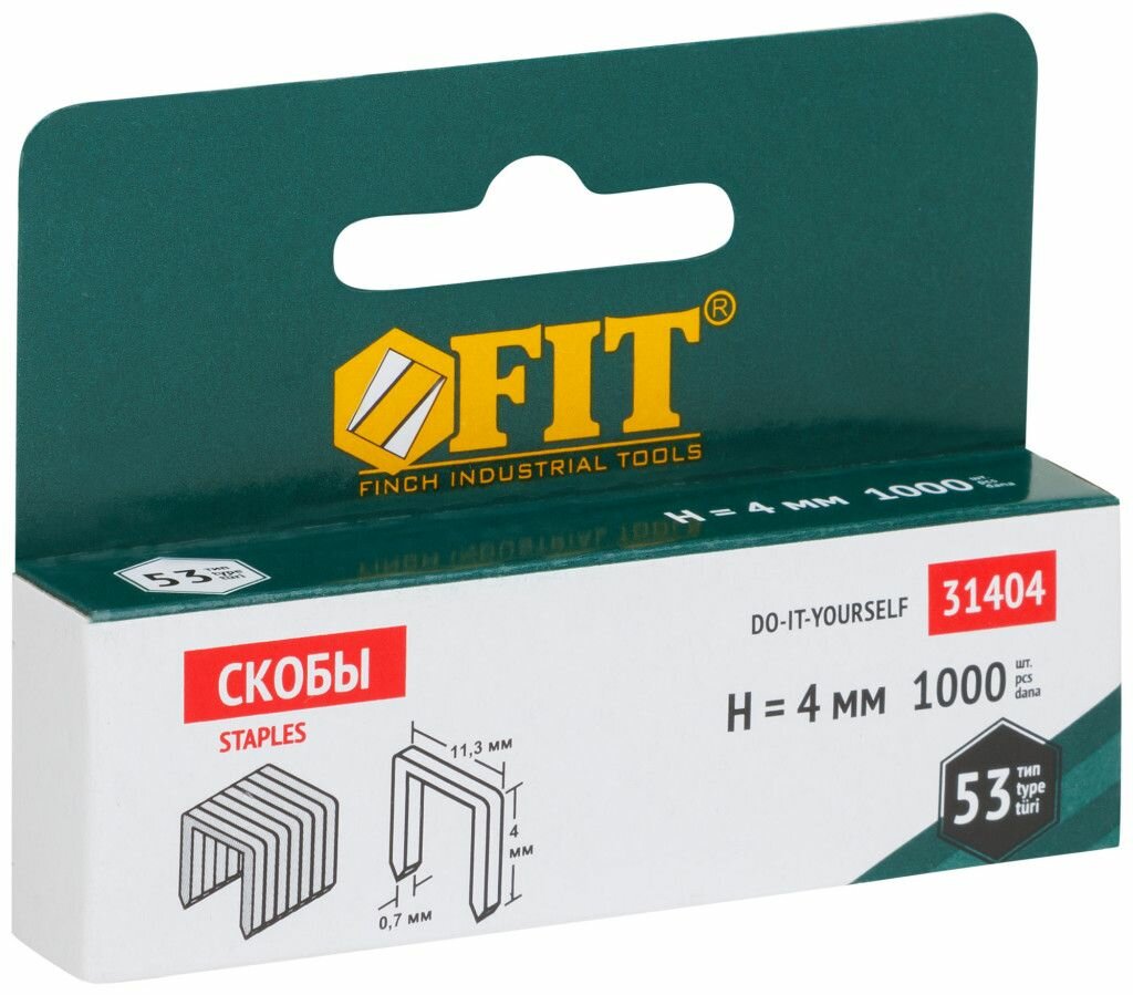 FIT Скобы закаленные 53 для строительного мебельного степлера 11,3 х 0,7 х 6 мм 1000 шт
