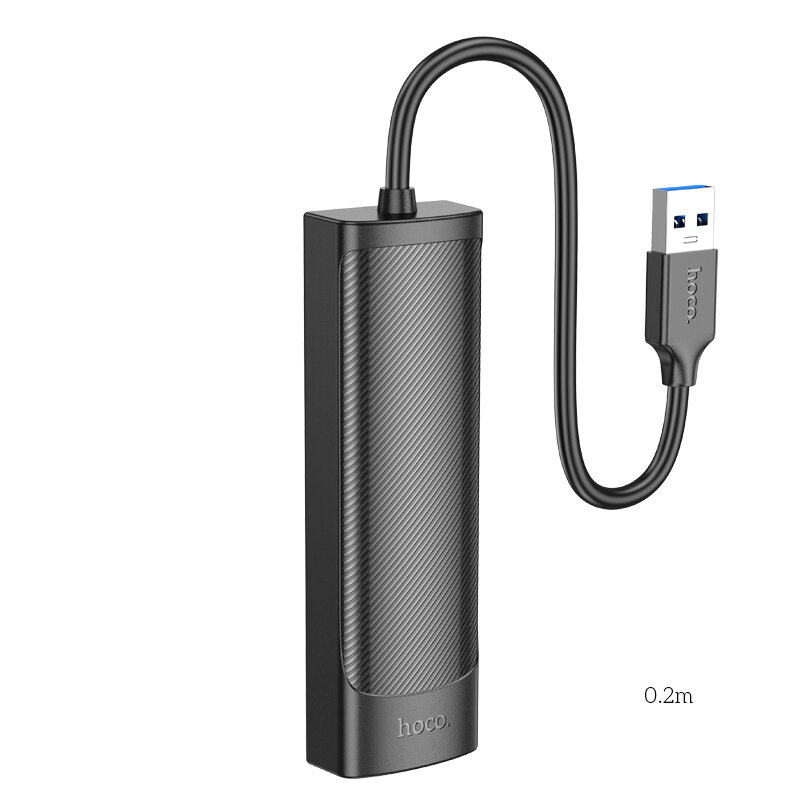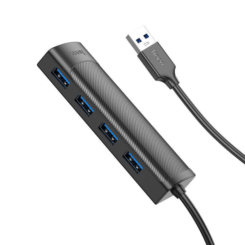 USB концентратор 4 в 1, Хаб для компьютера USB-A 3.0 интерфейс, 4хUSB 3.0 кабель 1,2 м / Hoco HB41 Hub, черный