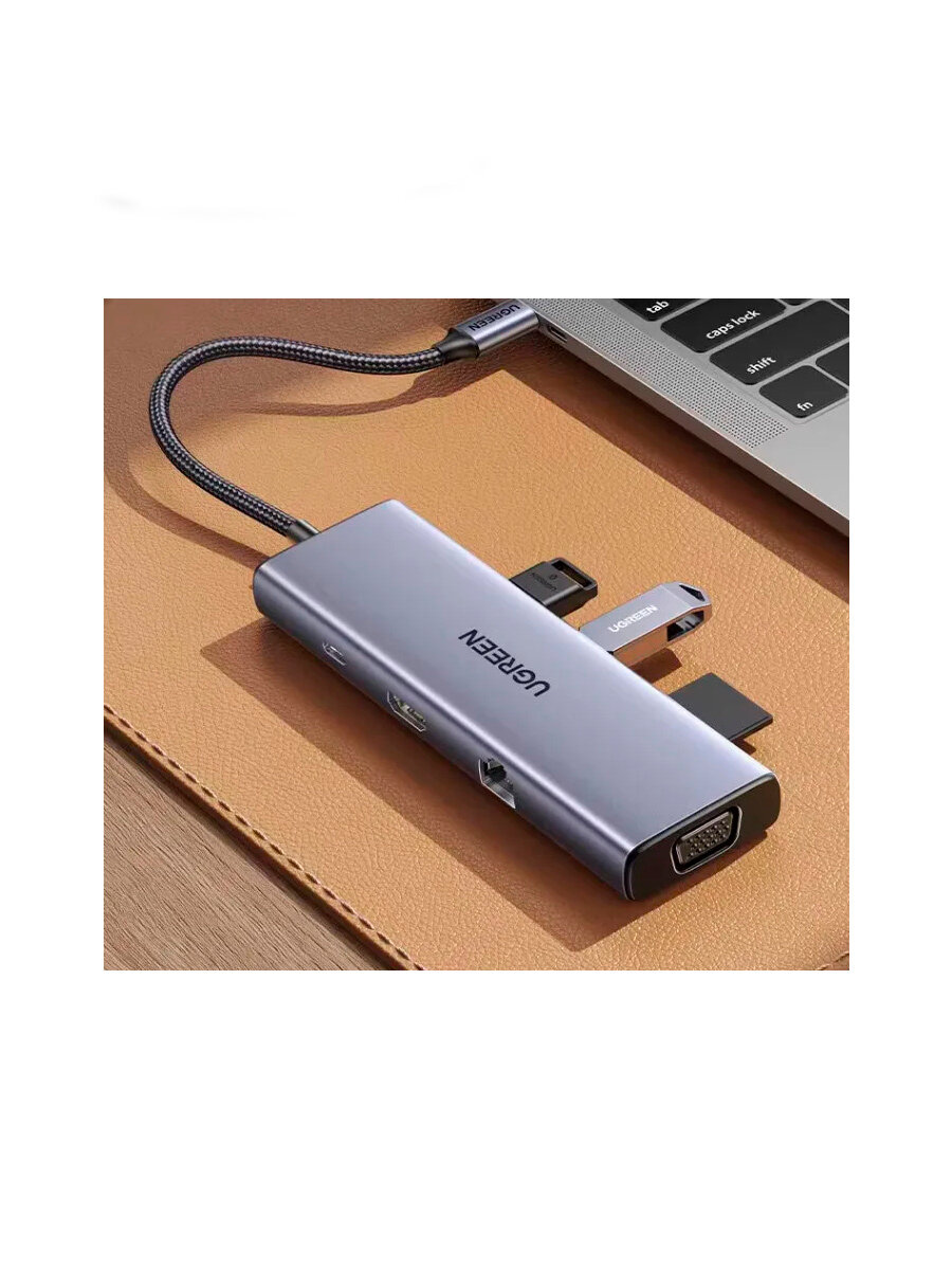 Купить Хаб (разветвитель) Ugreen CM498, USB-C to 3*USB-A TF SD VGA RJ45 HDMI PD100W USB-C,(15600), серый