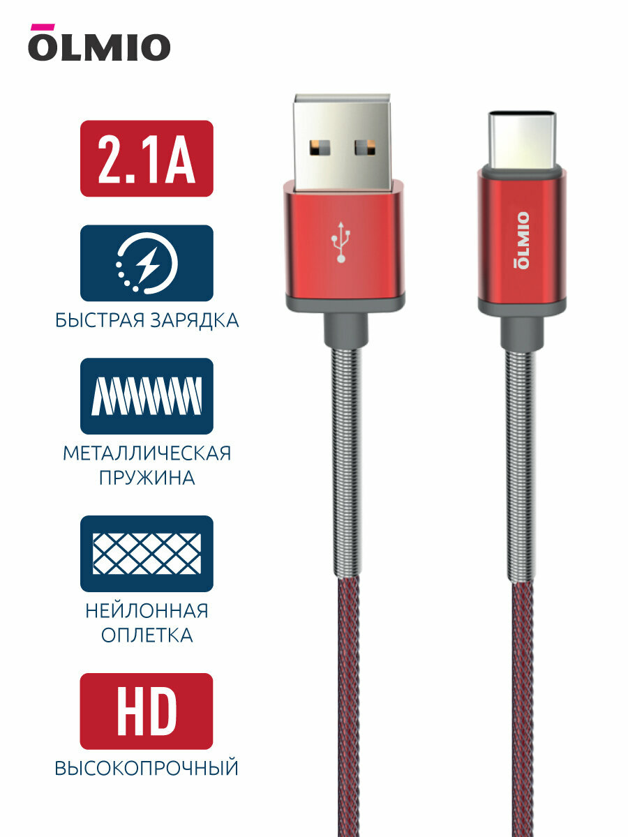 Купить Кабель OLMIO HD, USB 2.0 - USB Type-C, 1.2 метра, 2.1A