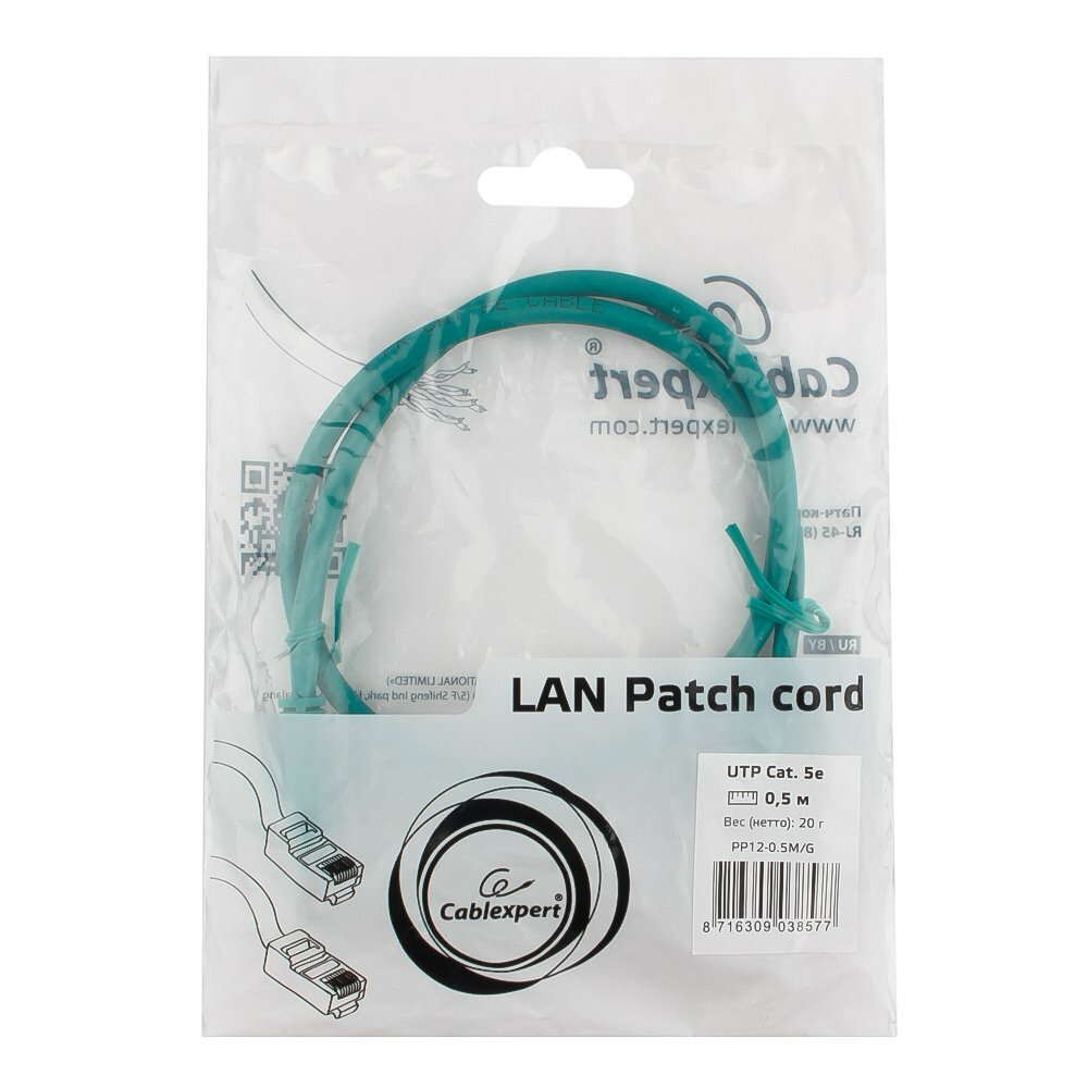 Патч-корд UTP Cablexpert зелёный категории 5e длина длина 0.5 метров PP12-0.5M/G