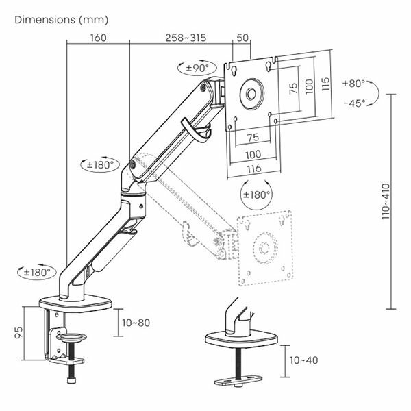 Настольный наклонно-поворотный кронштейн для монитора Ultramounts UM734BL (чёрный) интересное: