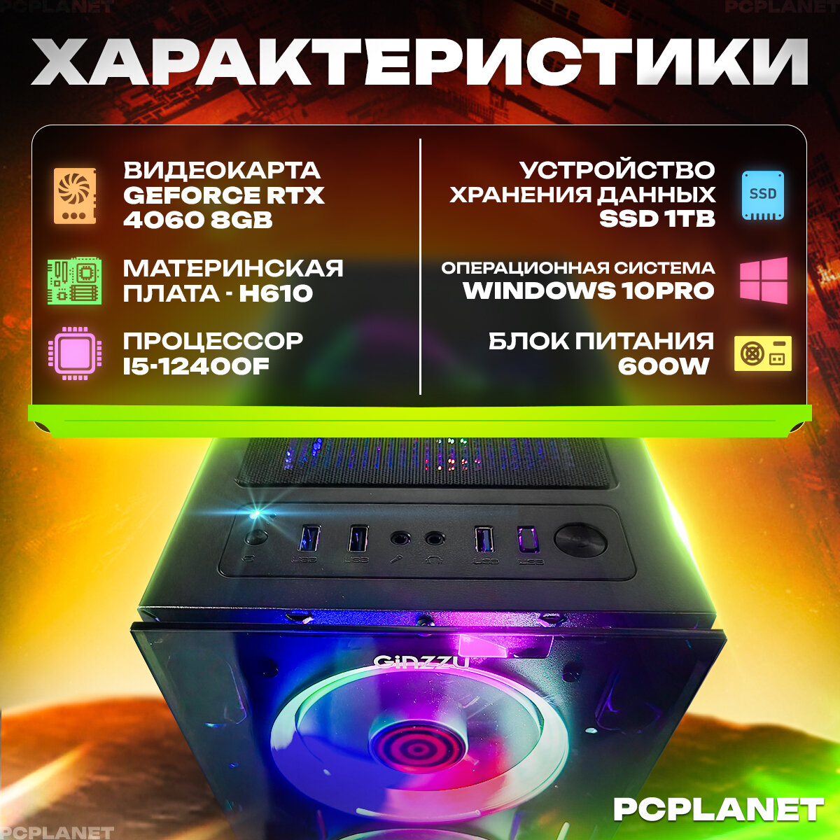 Купить PCPlanet игровой компьютер (Intel Core i5-12400F, RAM 32 ГБ, SSD 1000 ГБ, NVIDIA GeForce RTX 4060 (8 Гб)